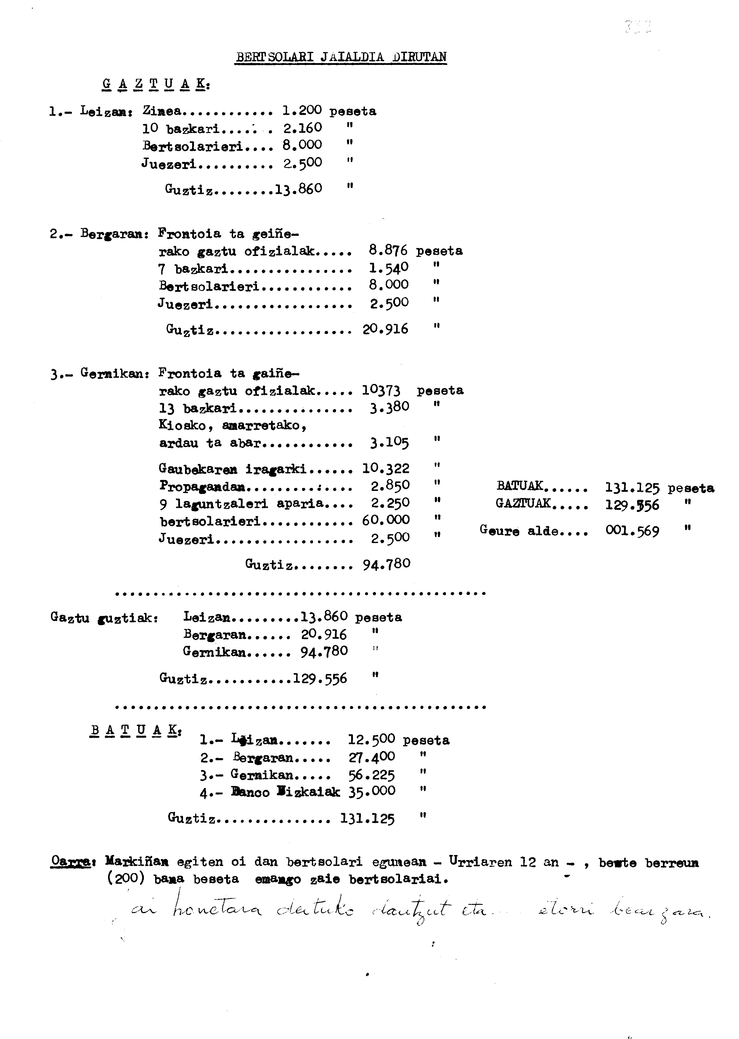 Euskaltzaindia. Batzordeak: Bertsolari jaialdiak dirutan