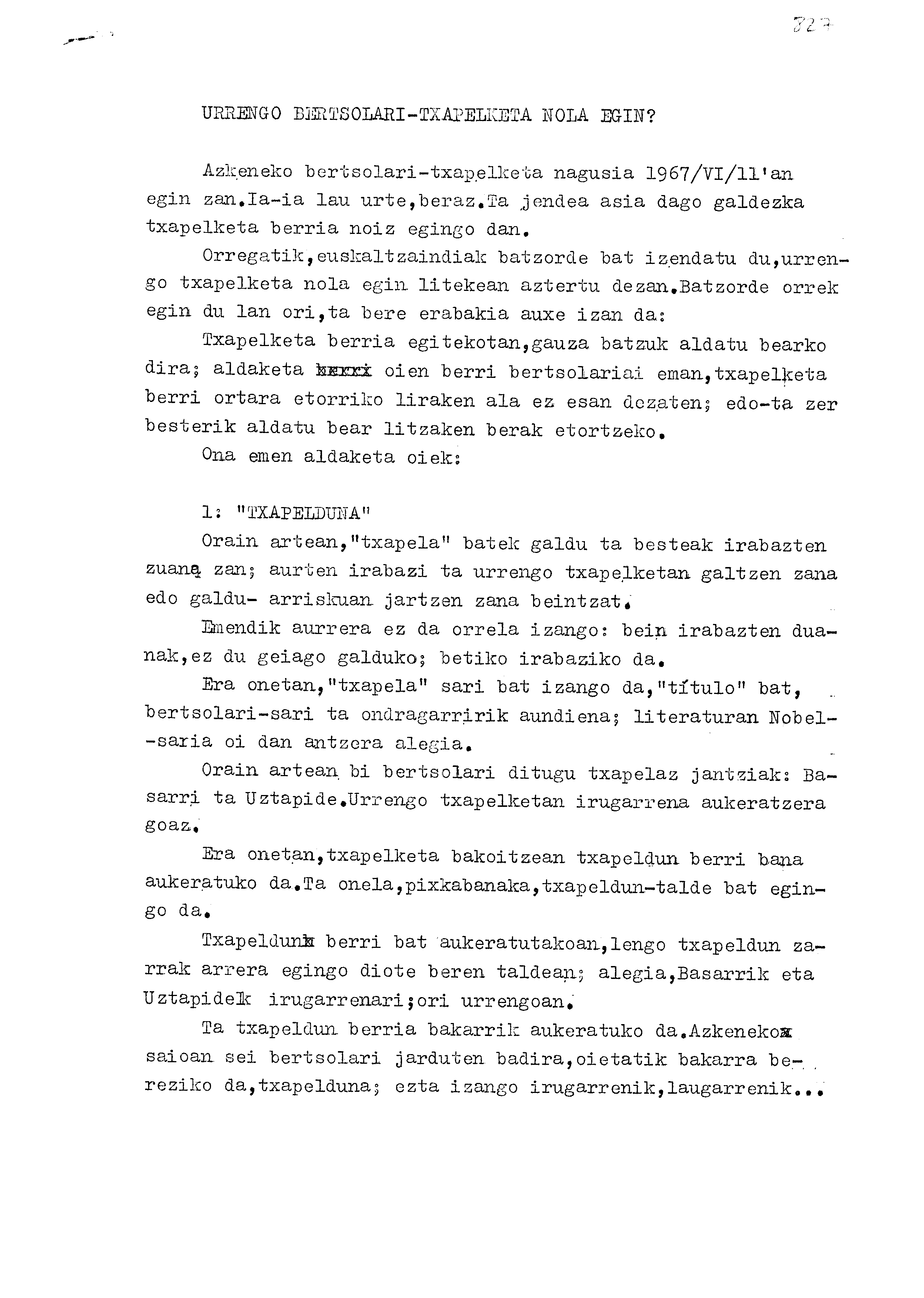 Euskaltzaindia. Batzordeak: Bertsolari Txapelketaren antolaketa berri bati buruz. Bertsolaritzako Nobel saria Izenburua : Urrengo bertsolari-txapelketa nola egin ?
