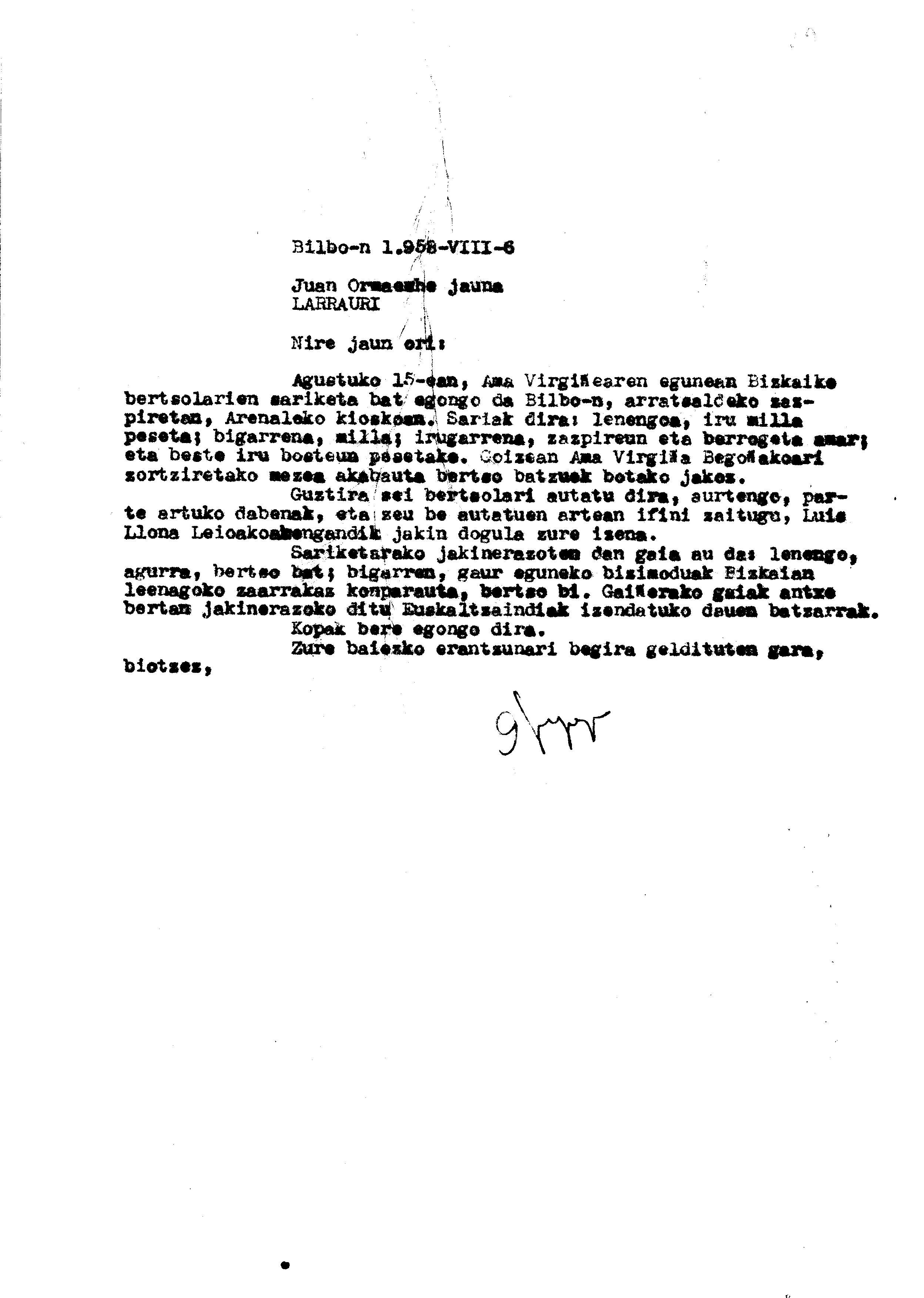 Bizkaiko Bertsolari Txapelketa (1. 1958. Bilbo)