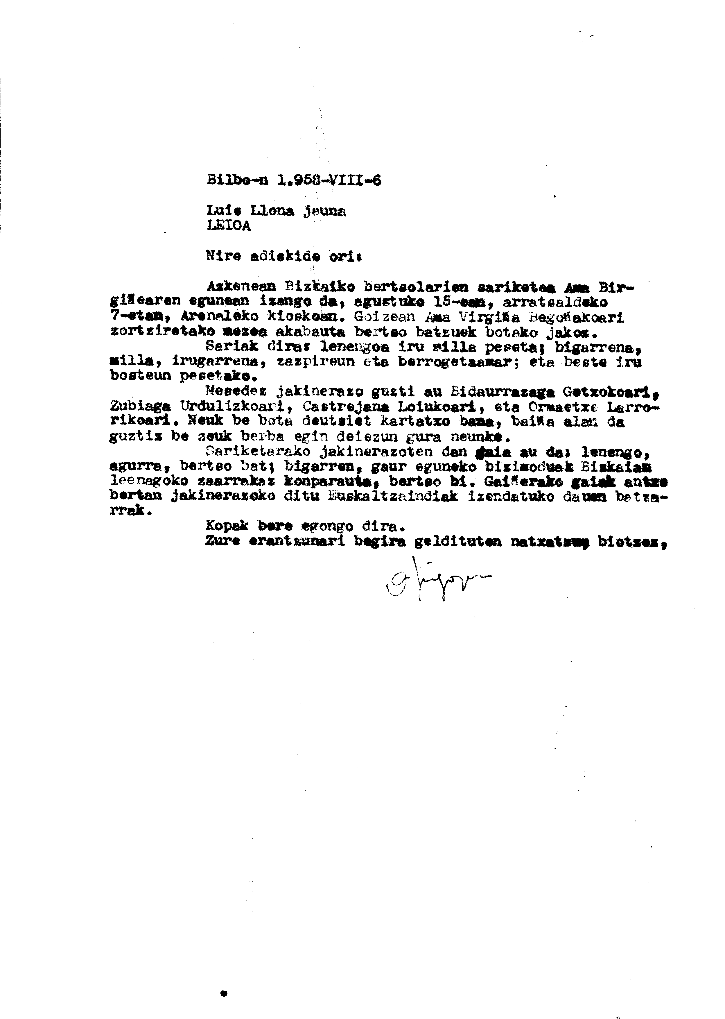 Bizkaiko Bertsolari Txapelketa (1. 1958. Bilbo)