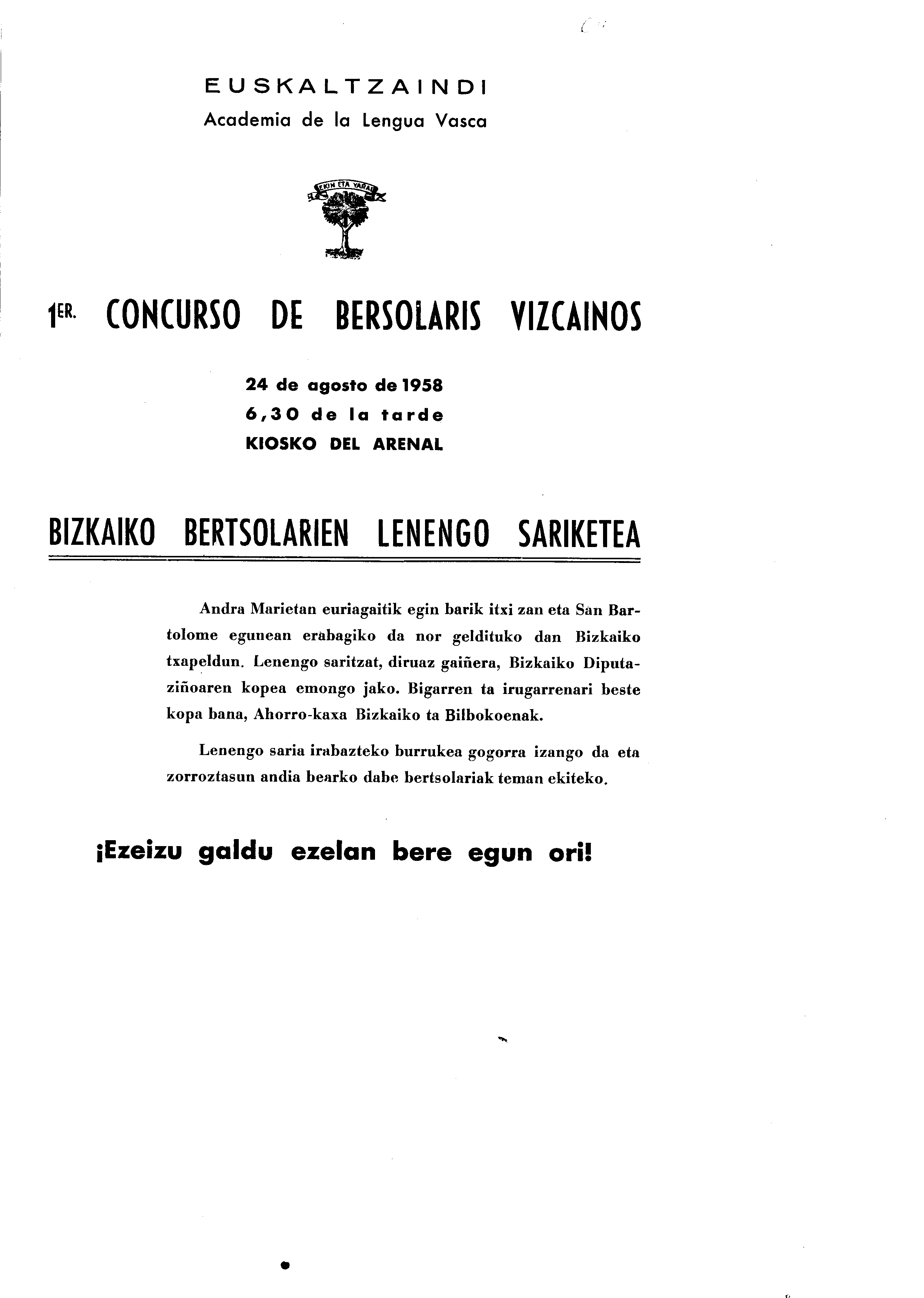 Bizkaiko Bertsolari Txapelketa (1. 1958. Bilbo)