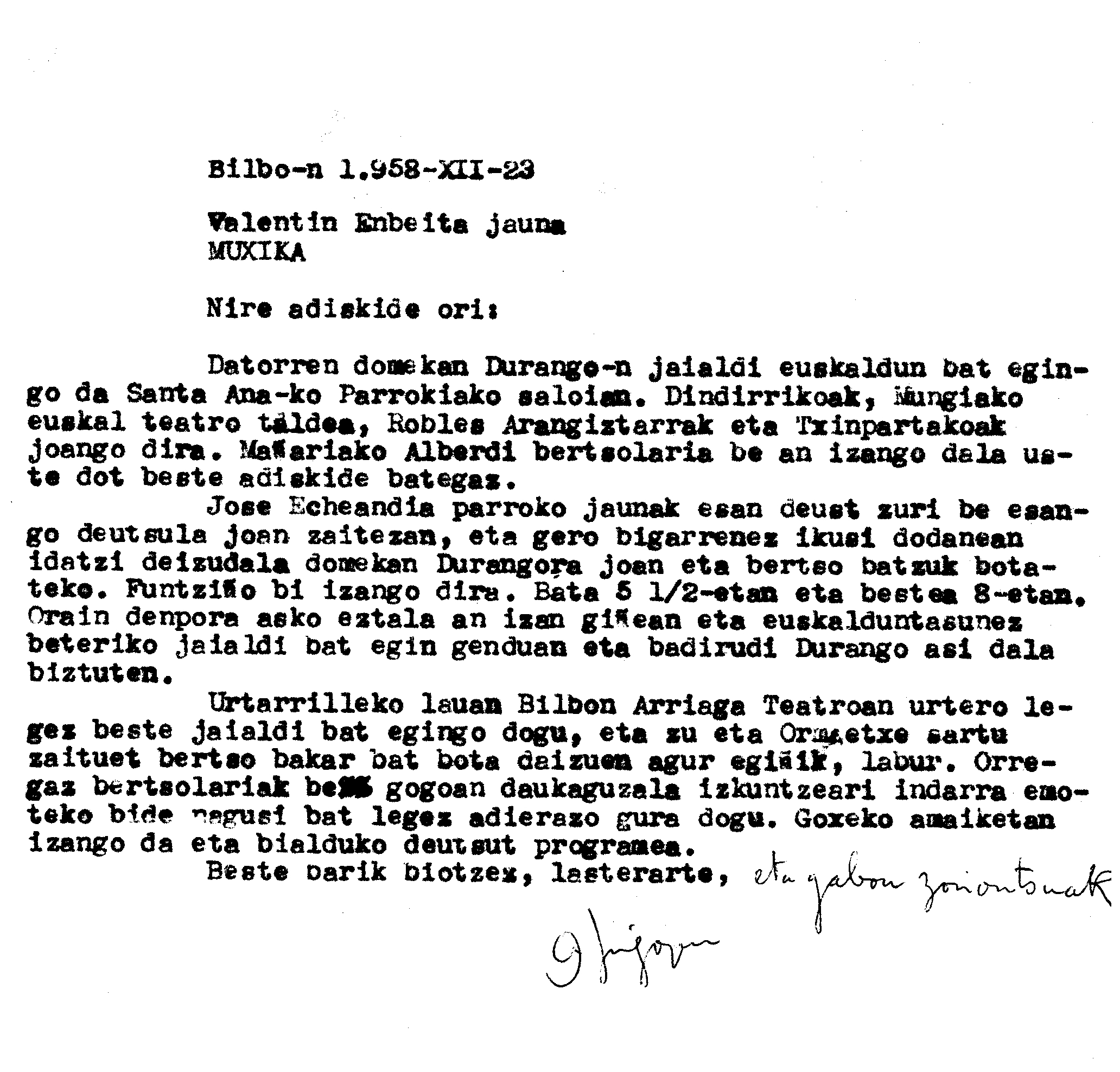 Bertsolaritza: Durangoko jaialdi batetan parte hartzeko gonbidapena
