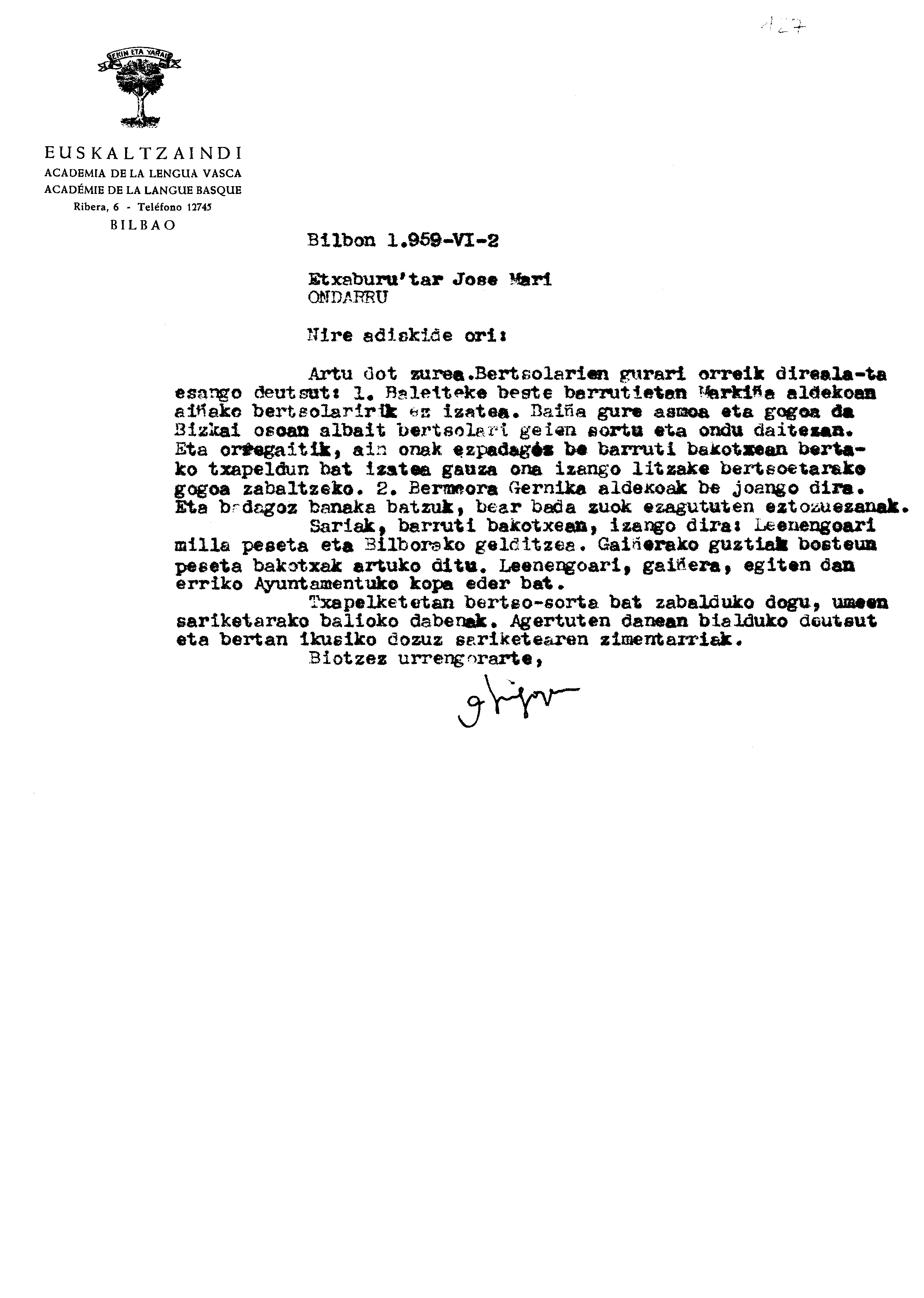 Alfonso Irigoienen Artxiboa > Euskaltzaindia > Bertsolaritza