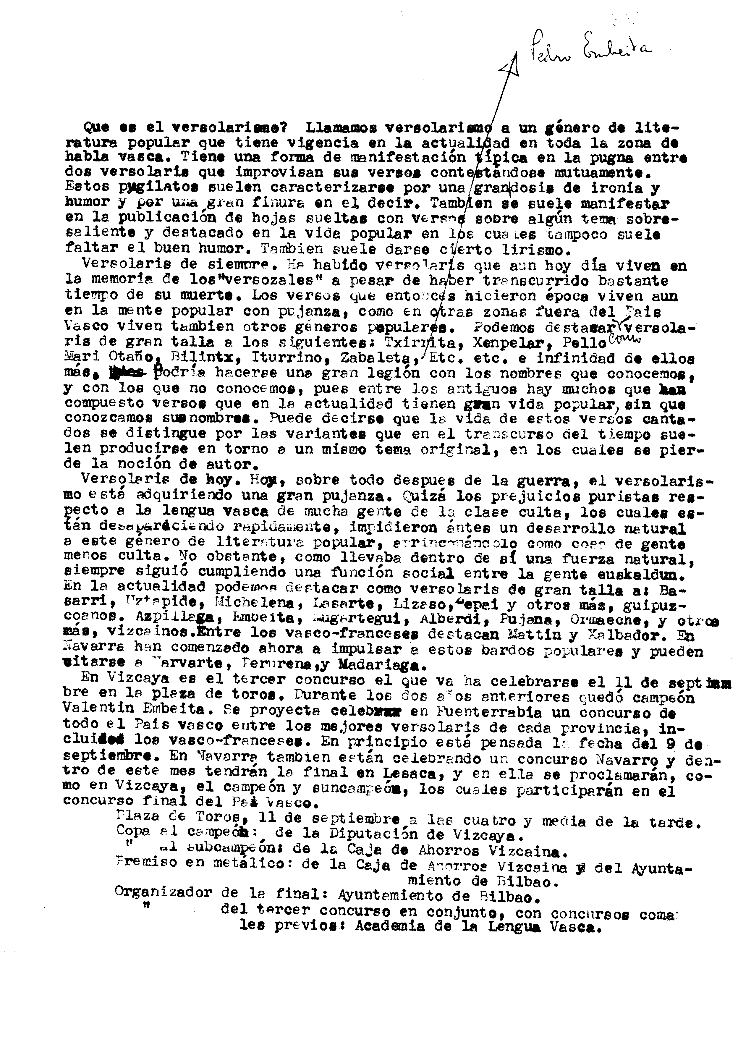 Alfonso Irigoienen Artxiboa > Euskaltzaindia > Bertsolaritza