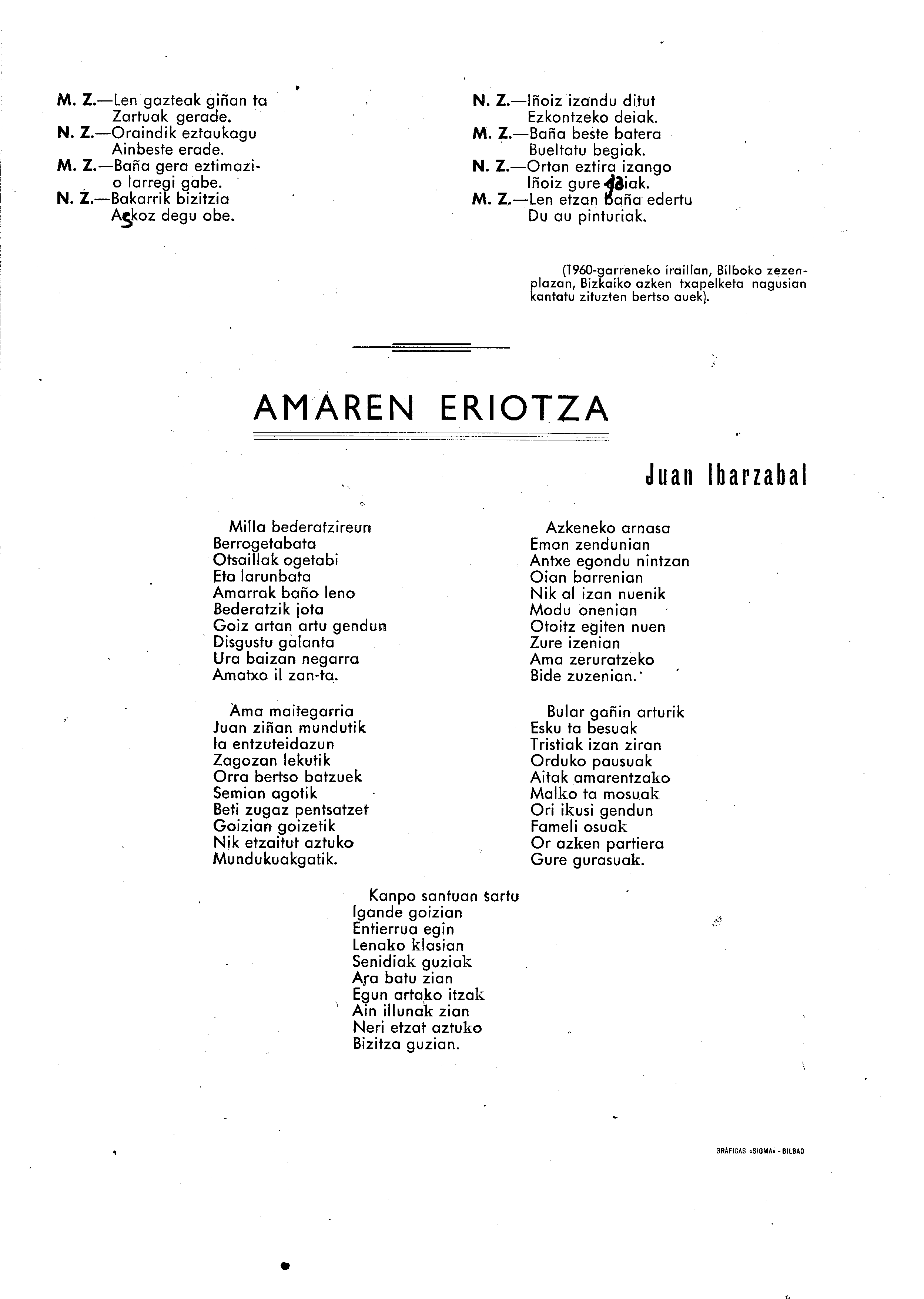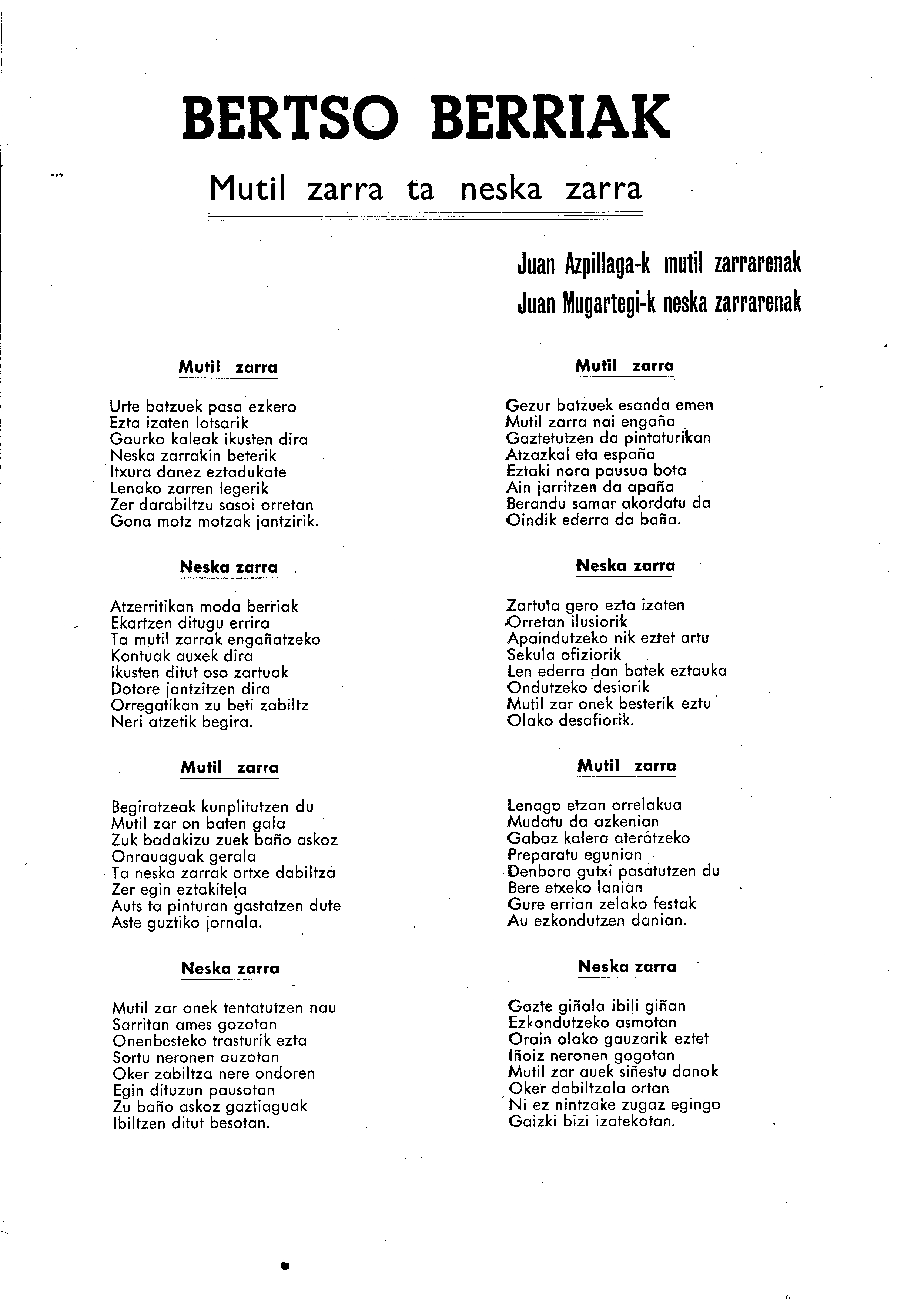 Bertsolaritza: Izenburua: Mutil zarra eta neska zarra / Amaren eriotza