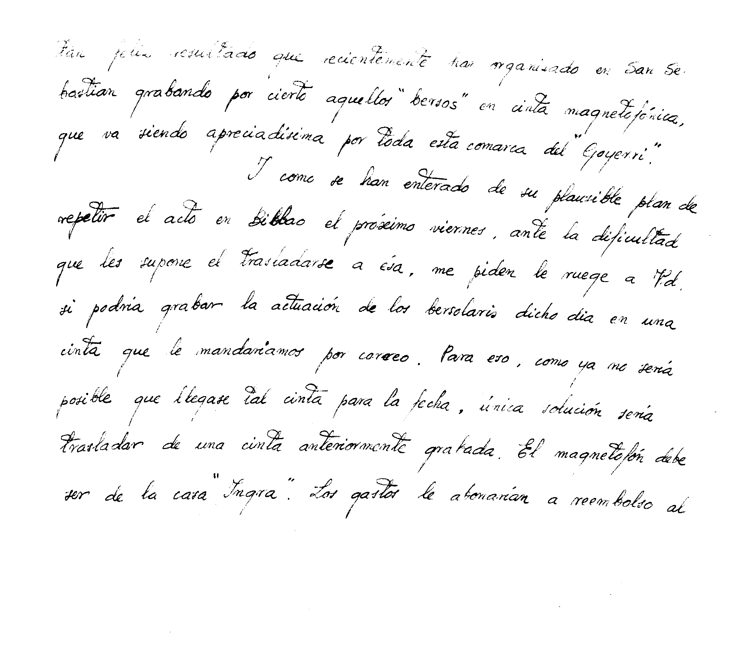 Bertsolaritza: Capitoleko bertso saioa zinta batetan grabatzeko eskaria egiten du
