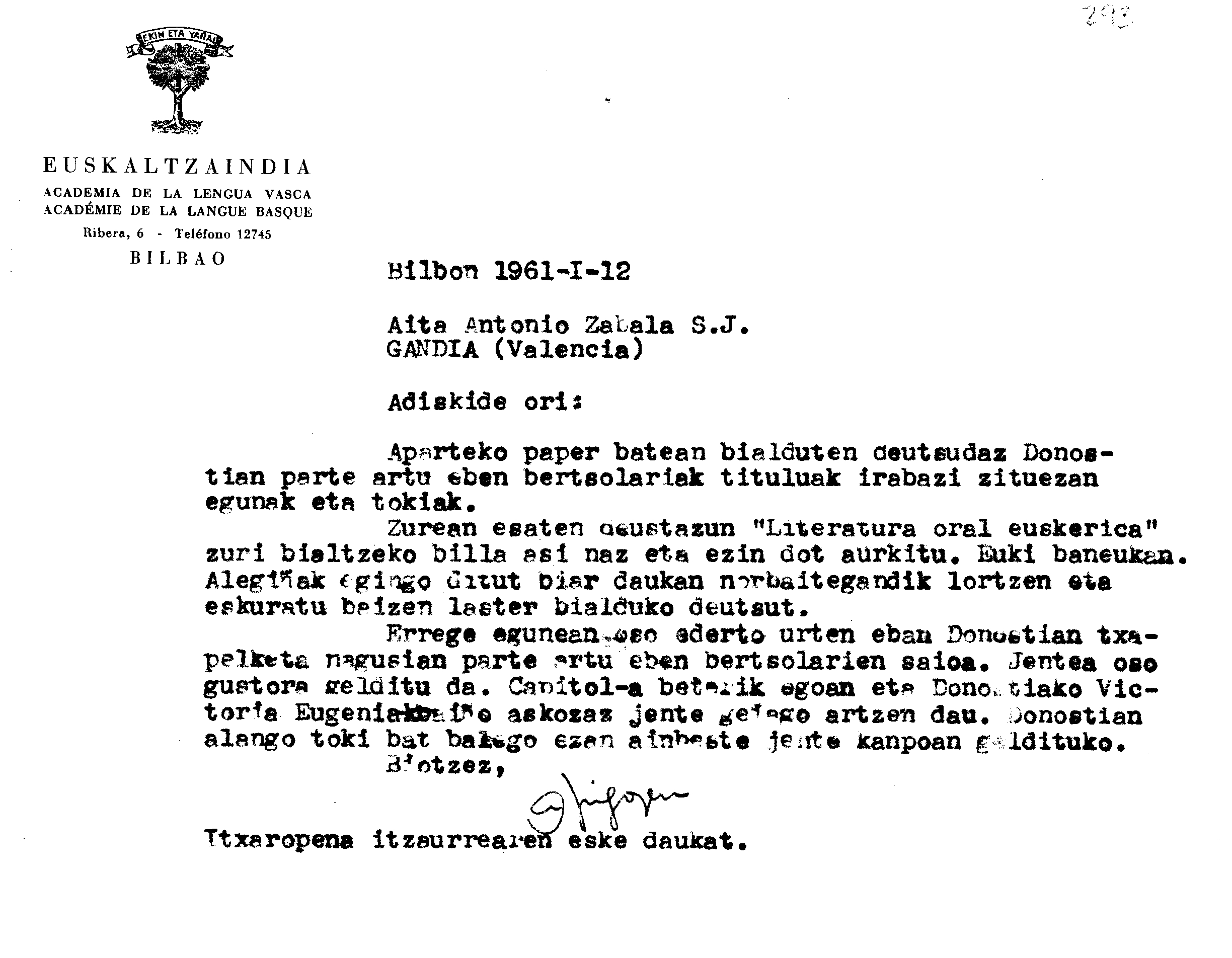 Alfonso Irigoienen Artxiboa > Euskaltzaindia > Bertsolaritza
