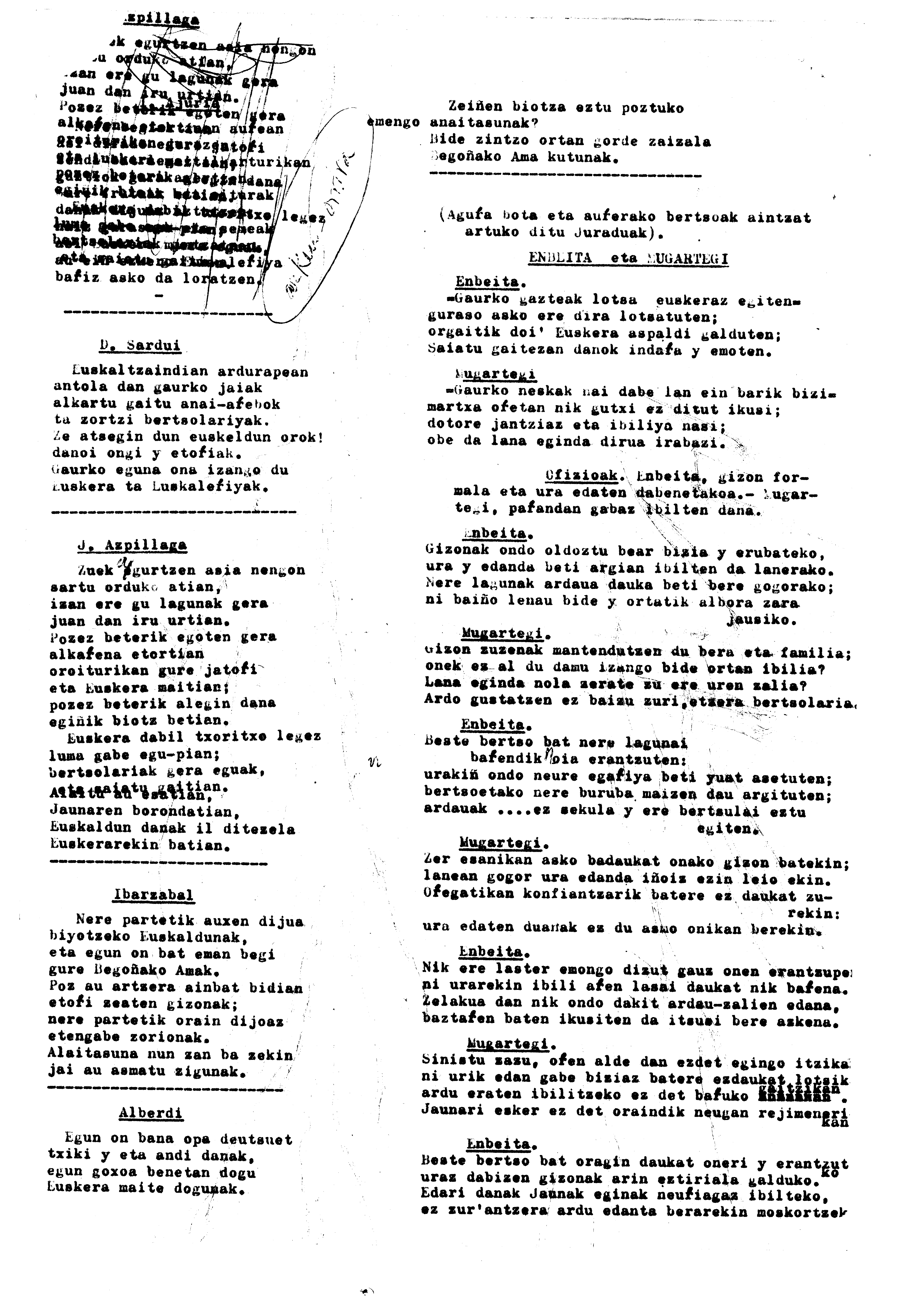Alfonso Irigoienen Artxiboa > Euskaltzaindia > Bertsolaritza