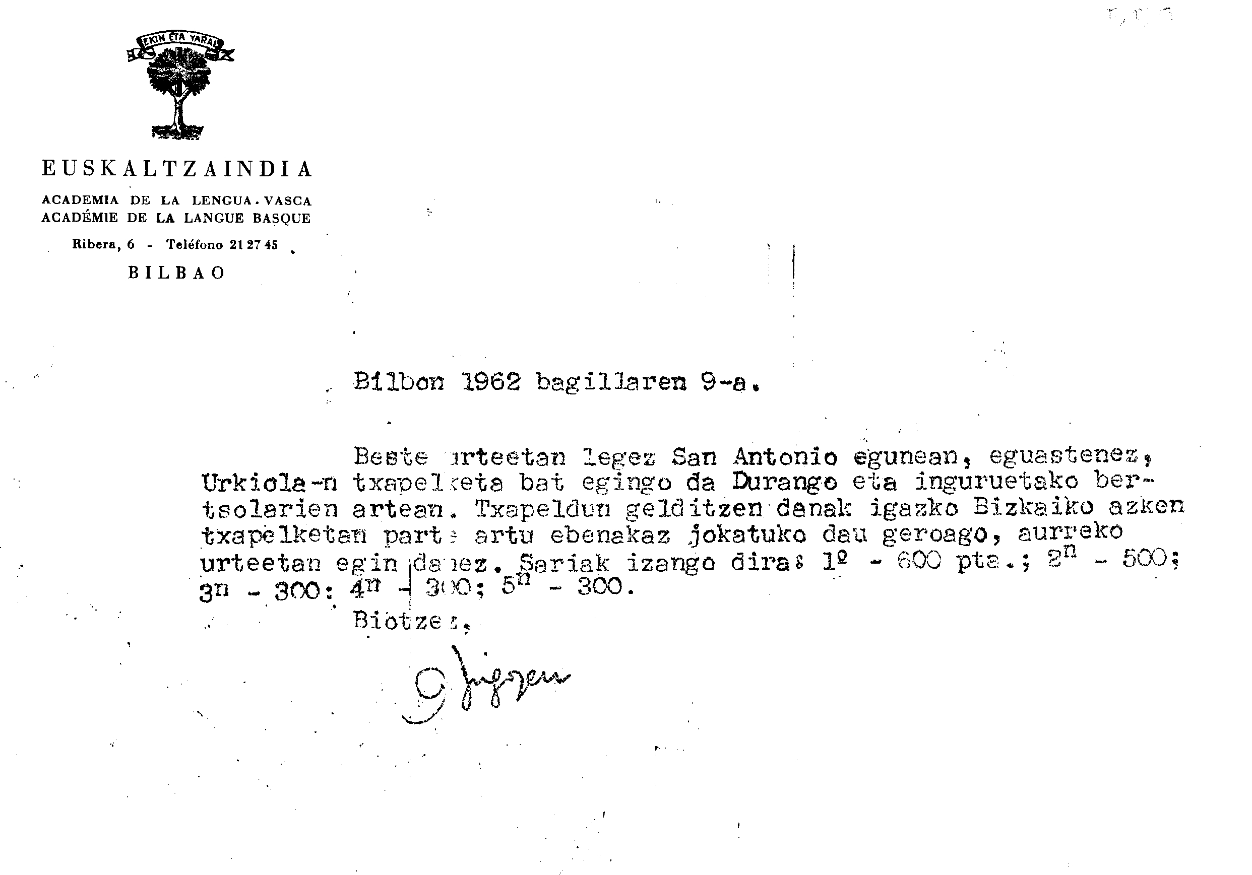 Bizkaiko Bertsolari Txapelketa (5. 1962.)