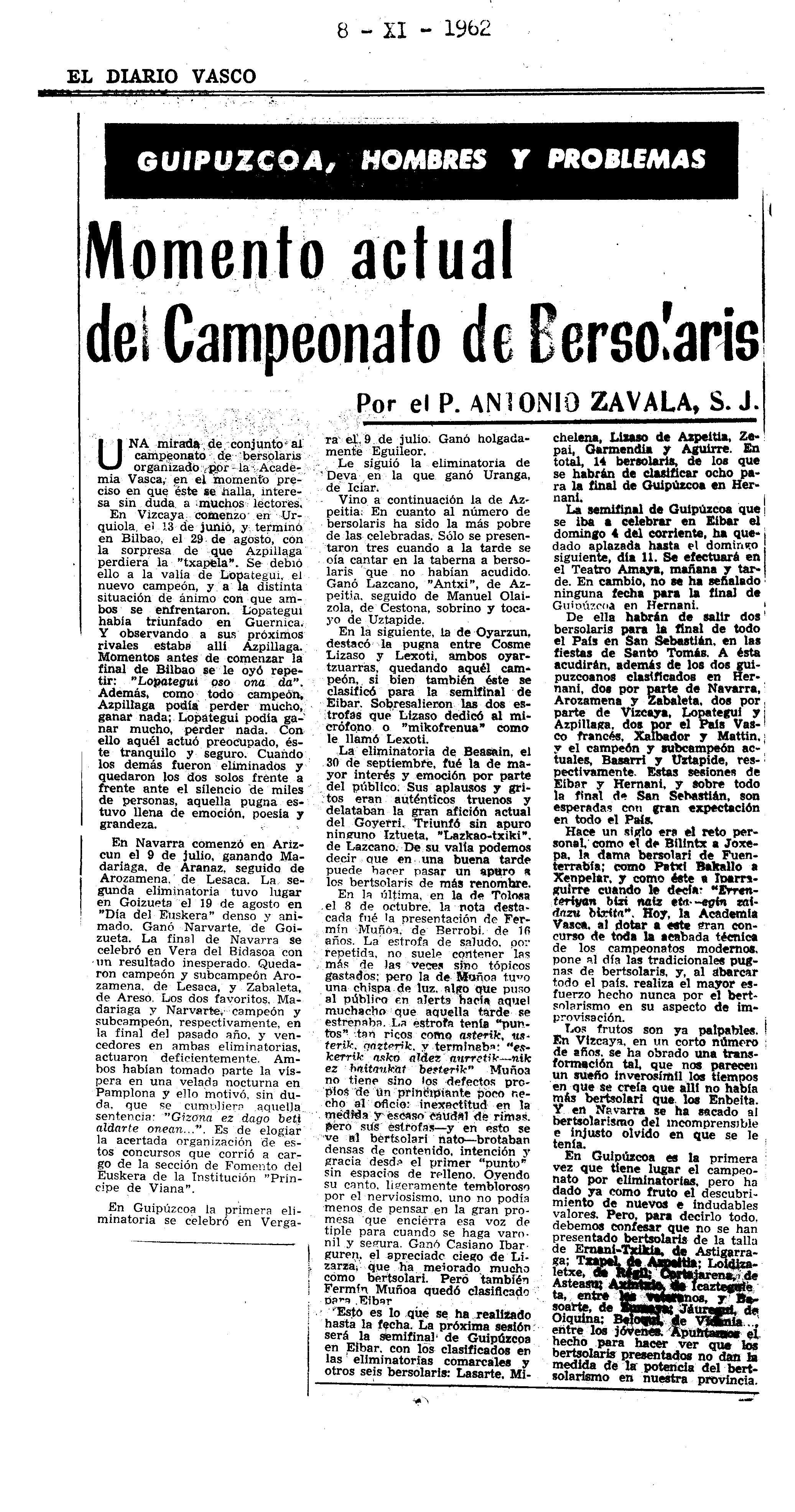 Bertsolaritza: Izenburua: Momento actual del Campeonato de Bersolaris