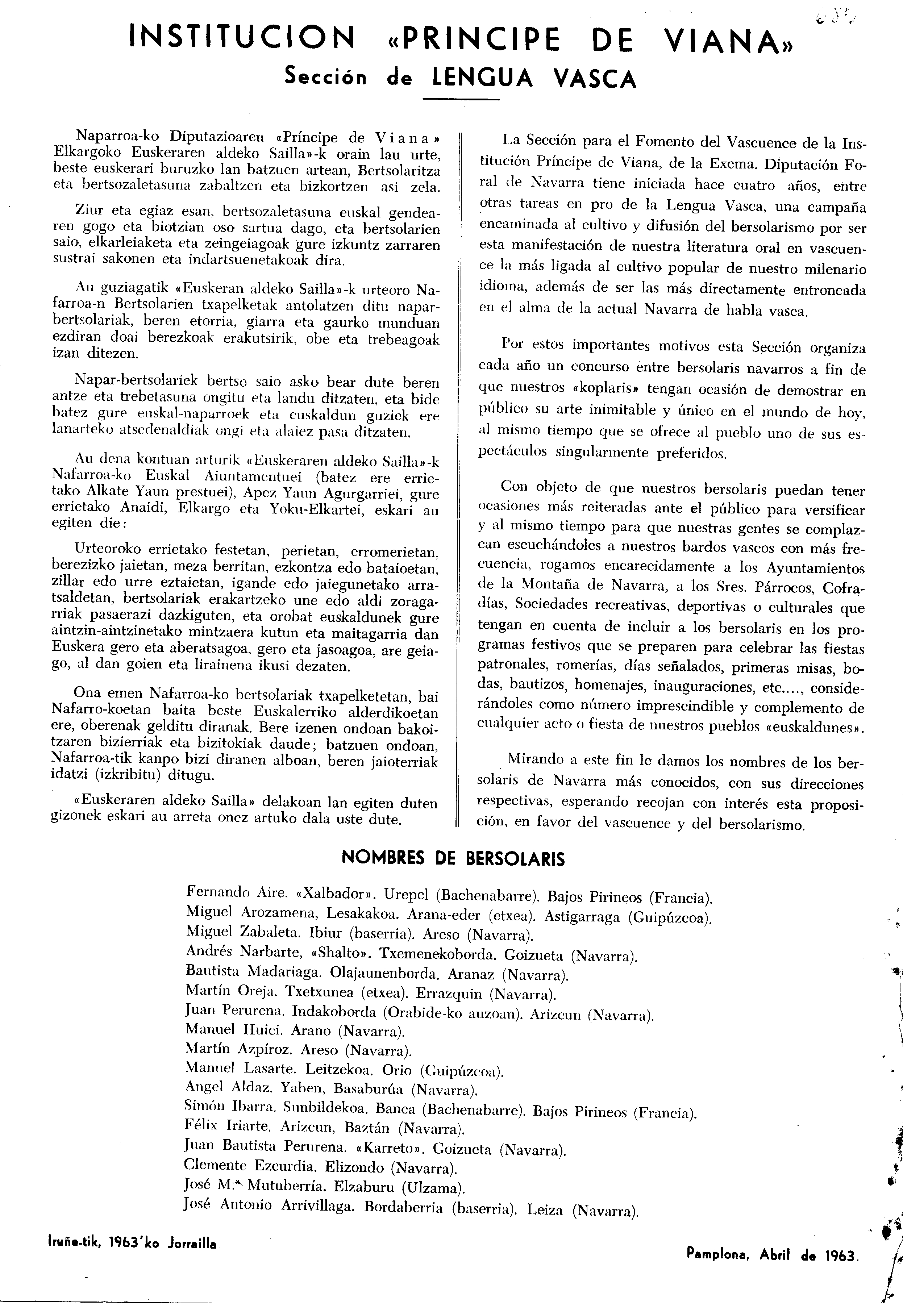 Nafarroako Bertsolari Txapelketa (5. 1963.)
