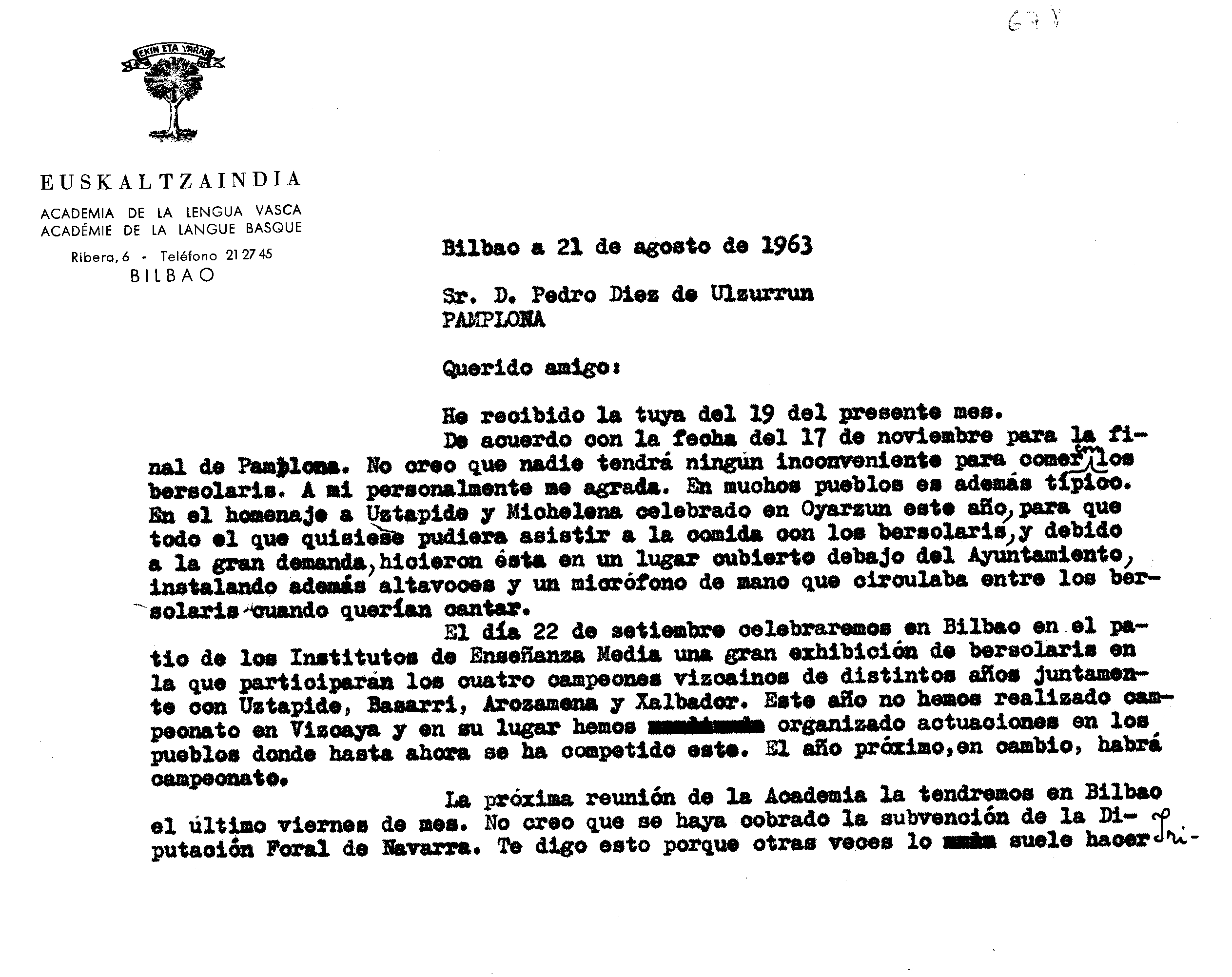 Alfonso Irigoienen Artxiboa > Euskaltzaindia > Bertsolaritza