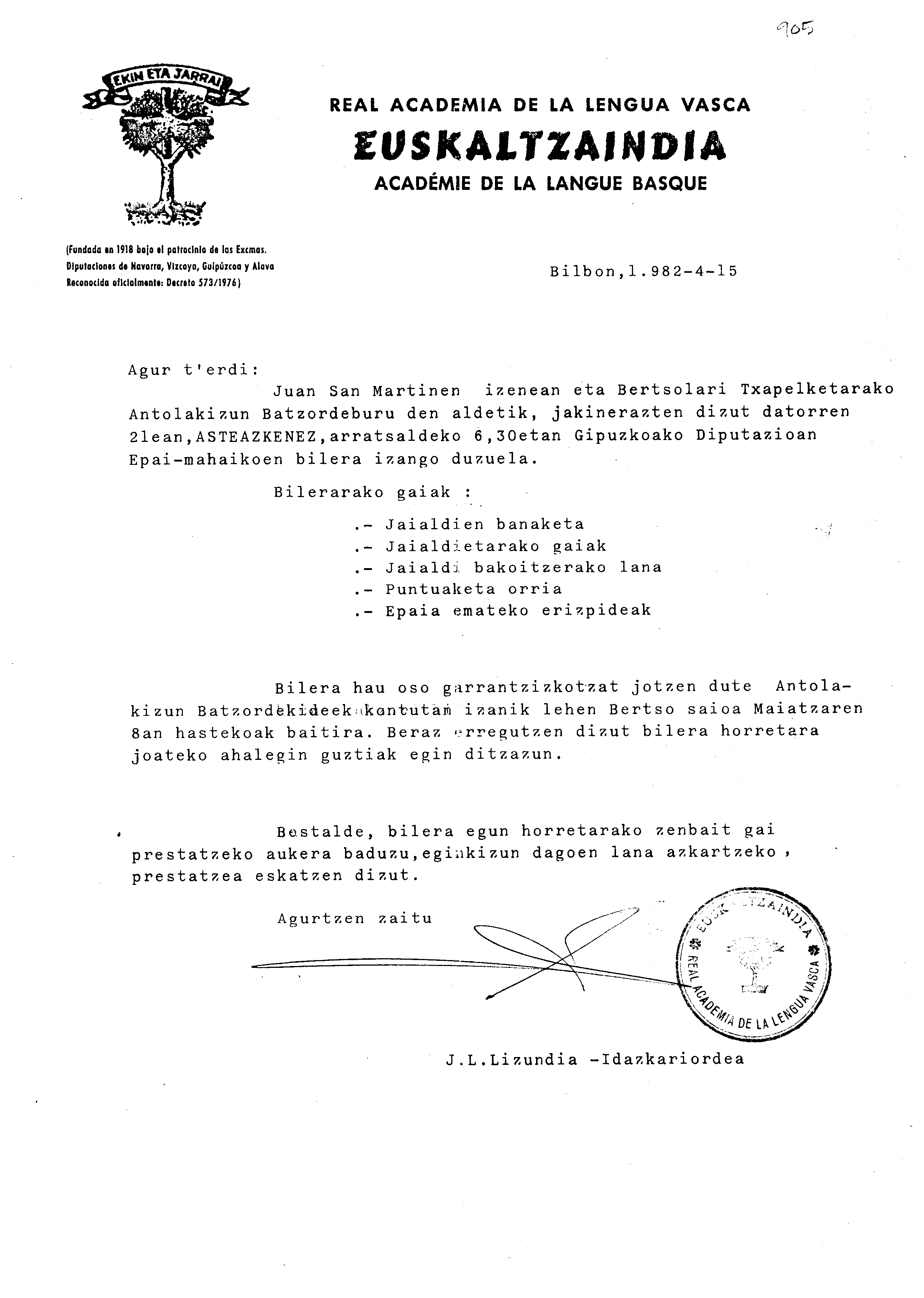 Alfonso Irigoienen Artxiboa > Euskaltzaindia > Bertsolaritza