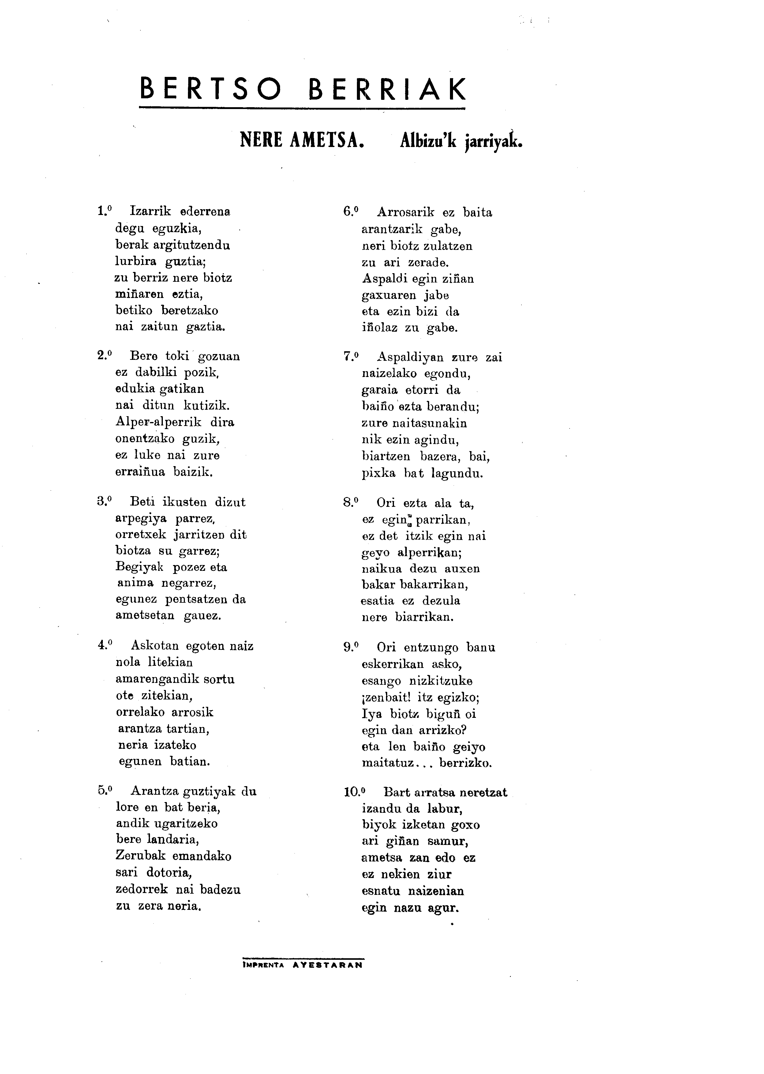Bertsolaritza: Izenburua: Nere ametsa