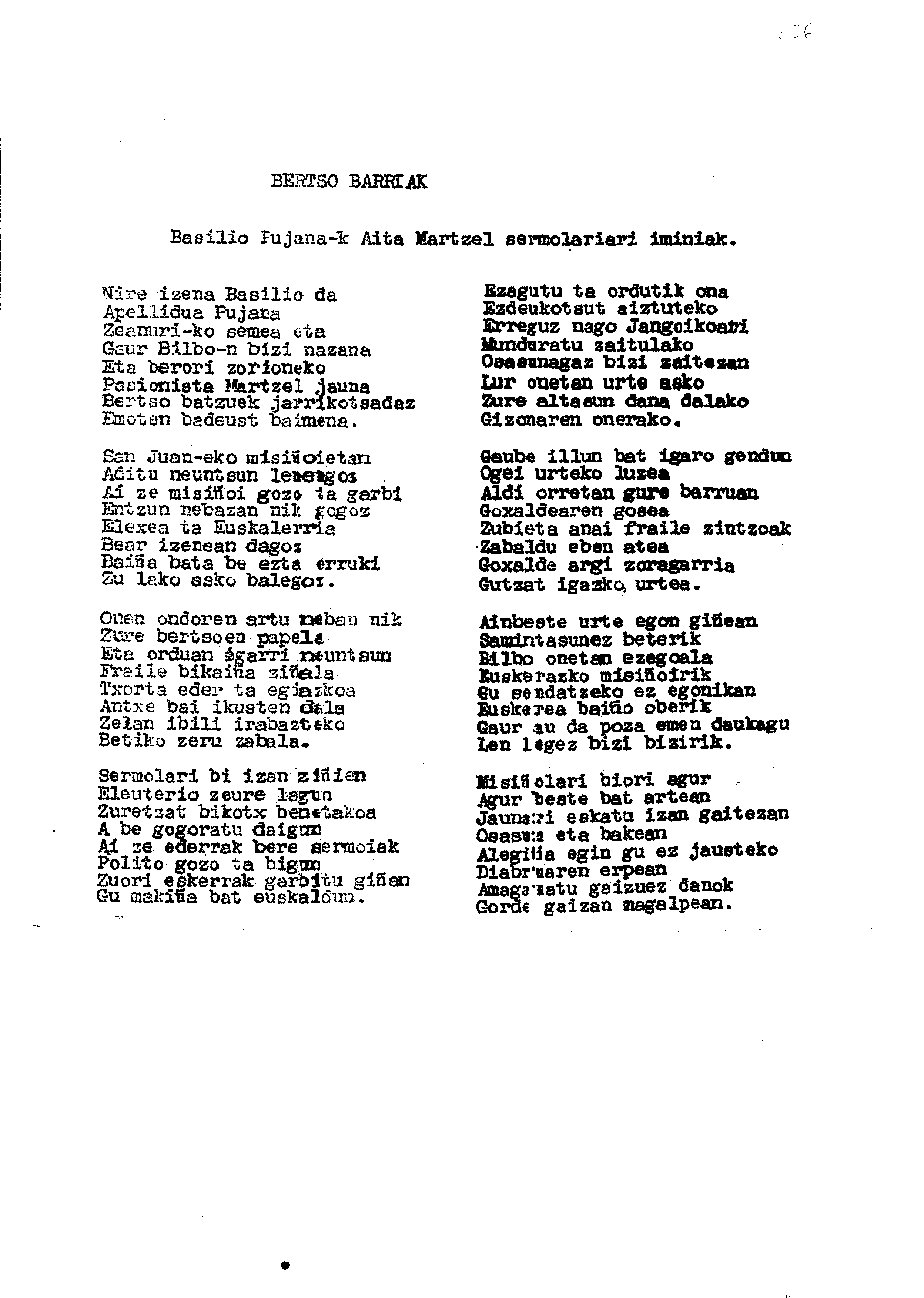 Bertsolaritza: Izenburua: Basilio Pujanak Aita Martzel sermoilariari ipiniak