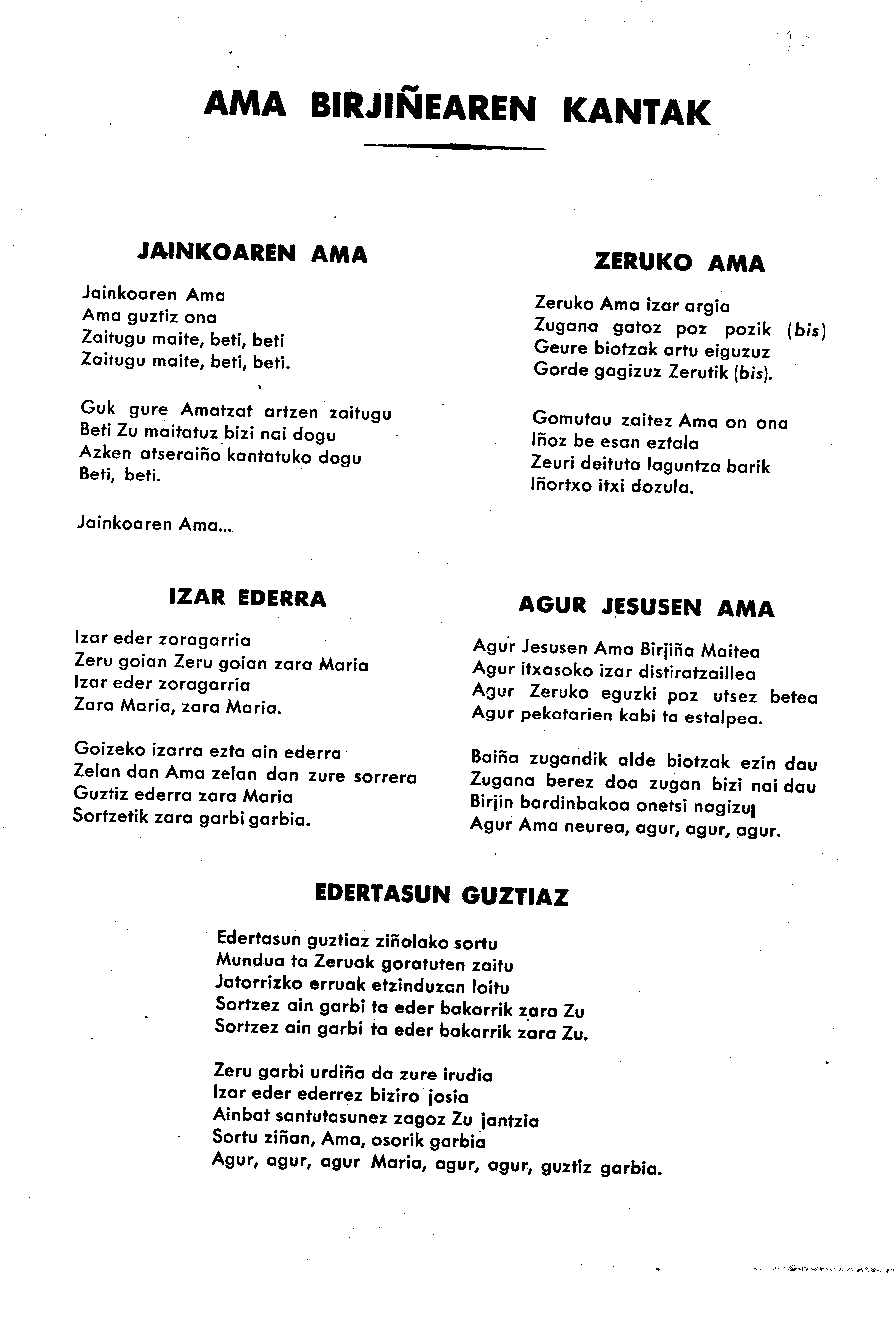 Bertsolaritza: Izenburua: Ama Birjiñaren kantak