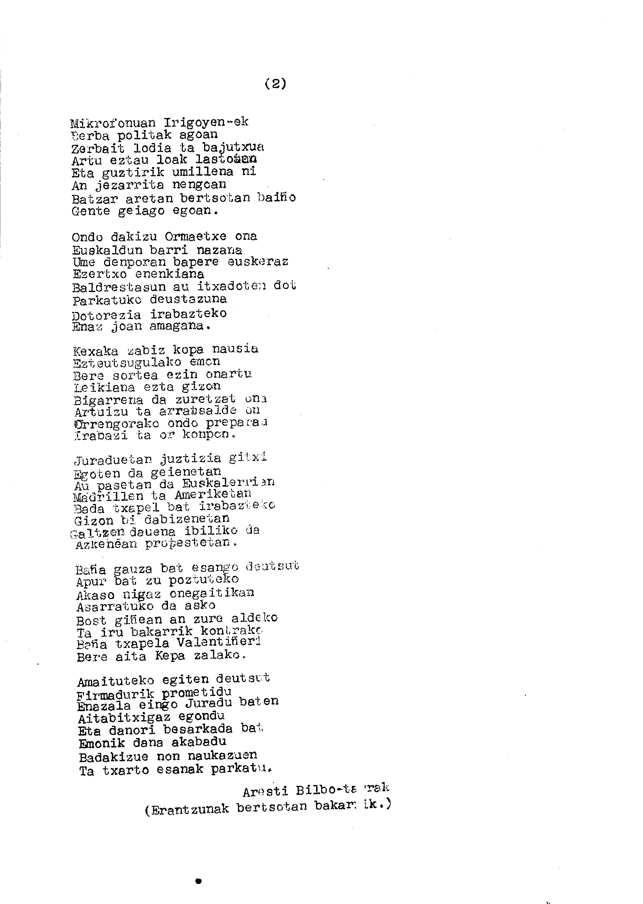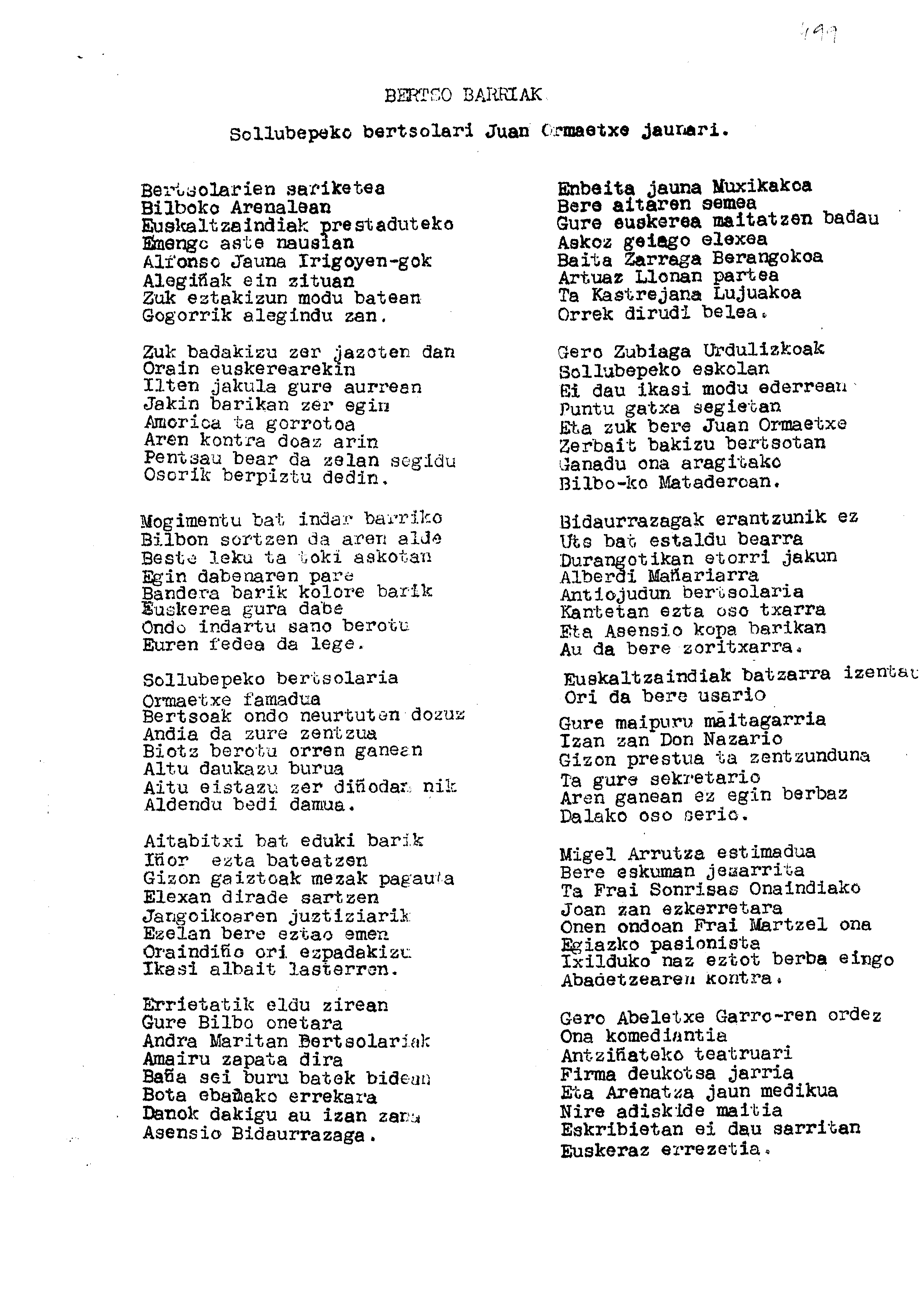 Bertsolaritza: Gabriel Arestik Ormaetxeri ipiniak