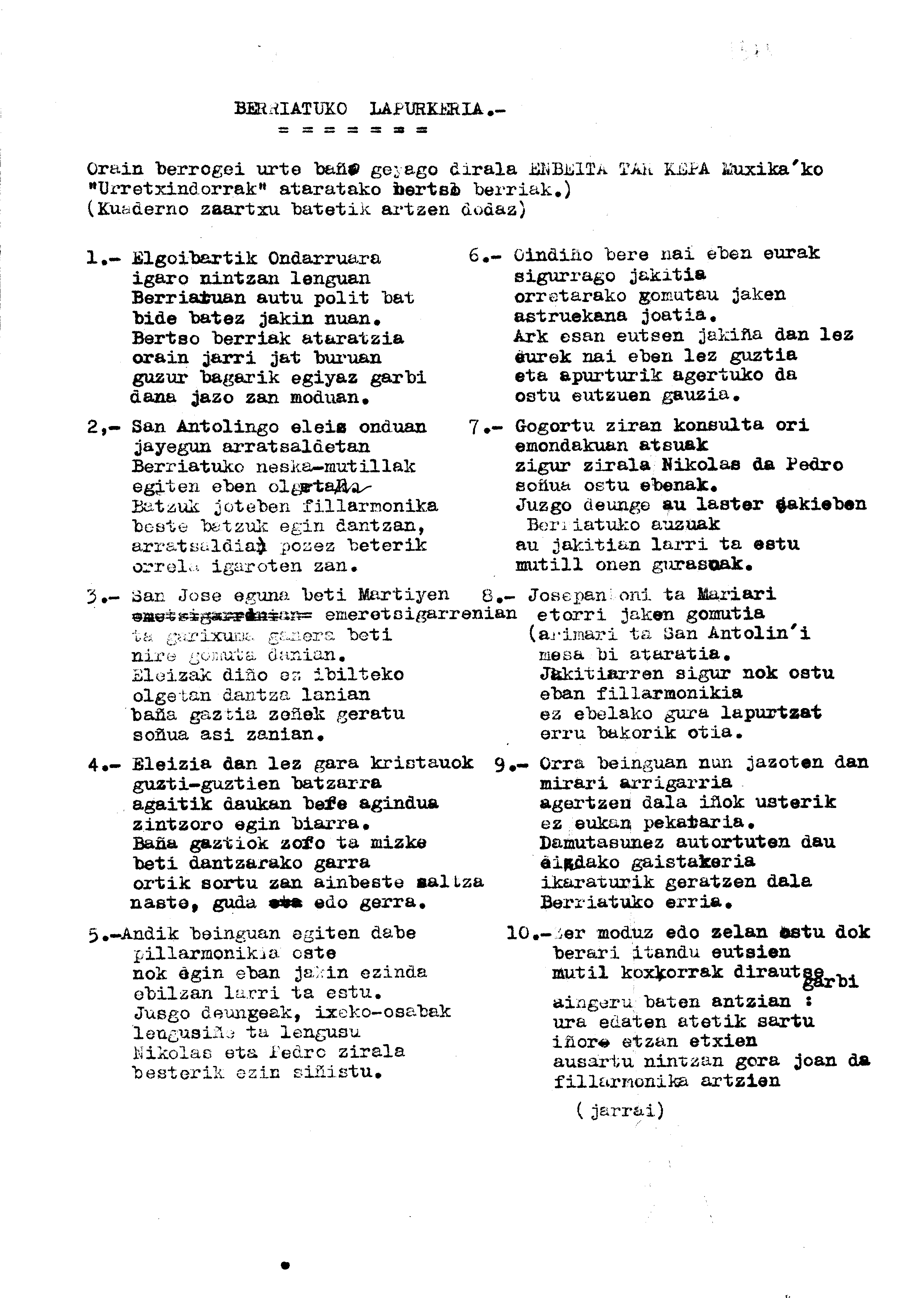 Bertso paperak: Izenburua: Berriatuko lapurketa