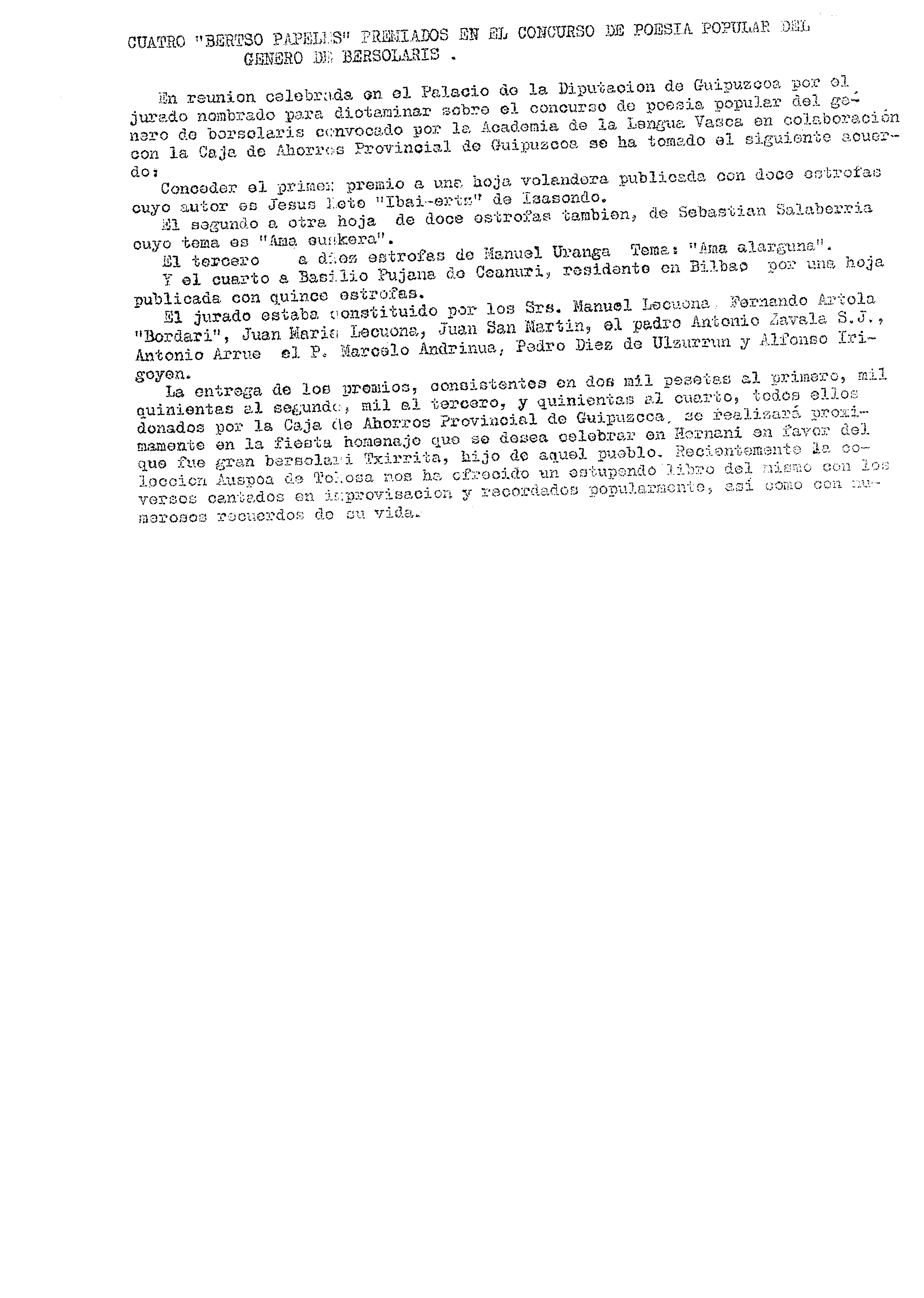 Alfonso Irigoienen Artxiboa > Euskaltzaindia > Bertsolaritza > Sariak