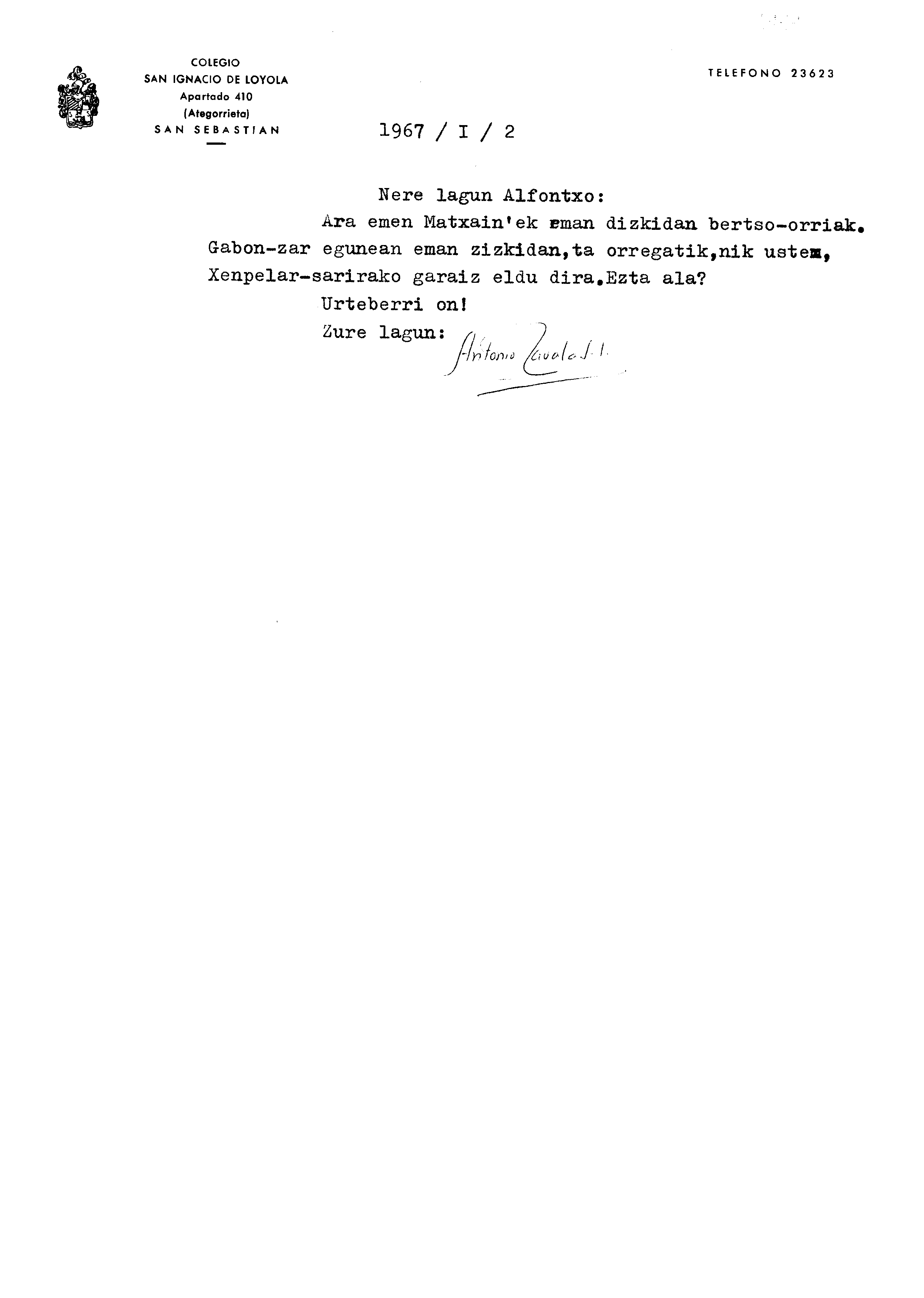 Euskaltzaindiaren sariak. Xenpelar saria 1967