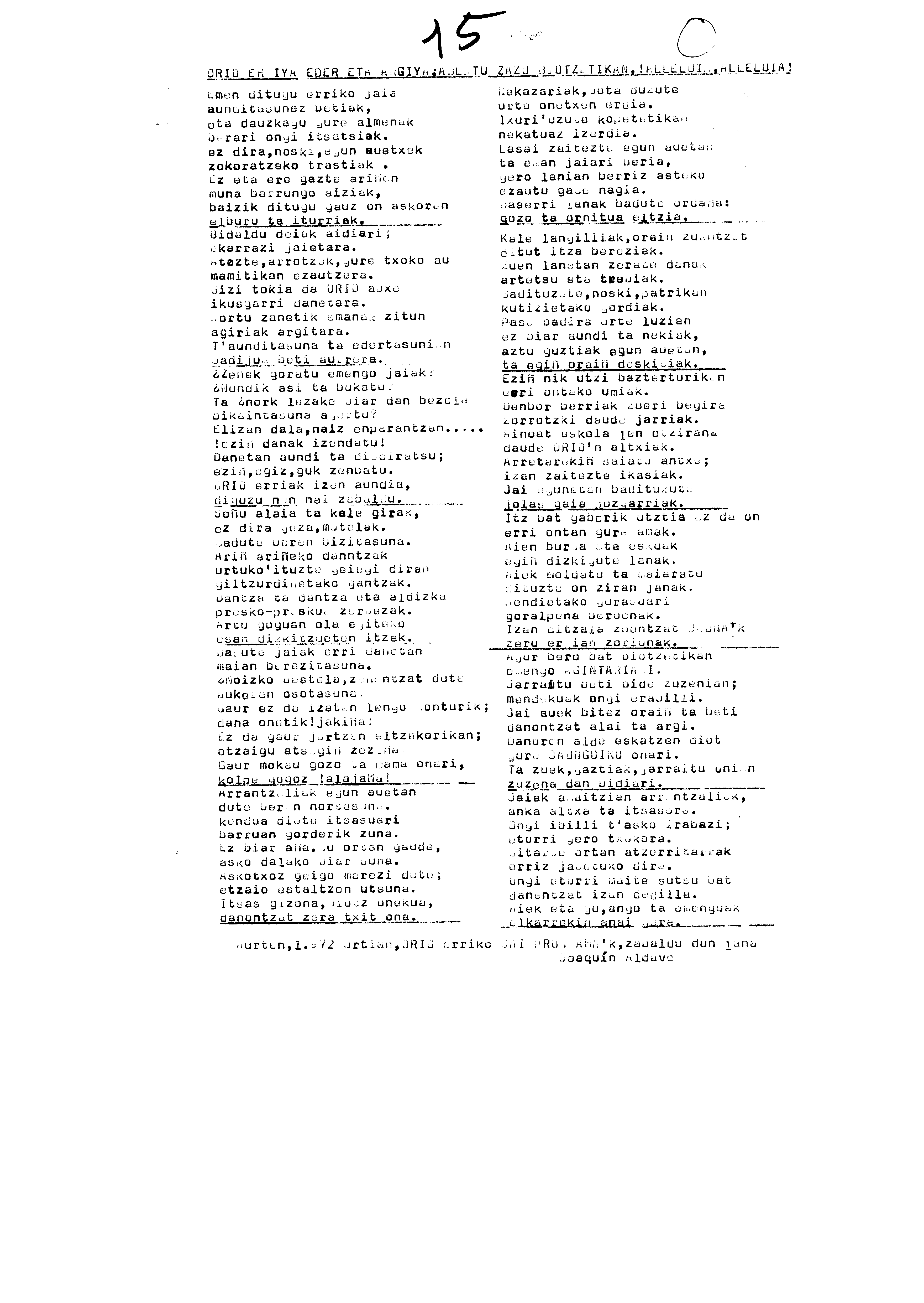 Euskaltzaindiaren sariak. Xenpelar saria: Izenburua: Orio erriya eder eta argiya