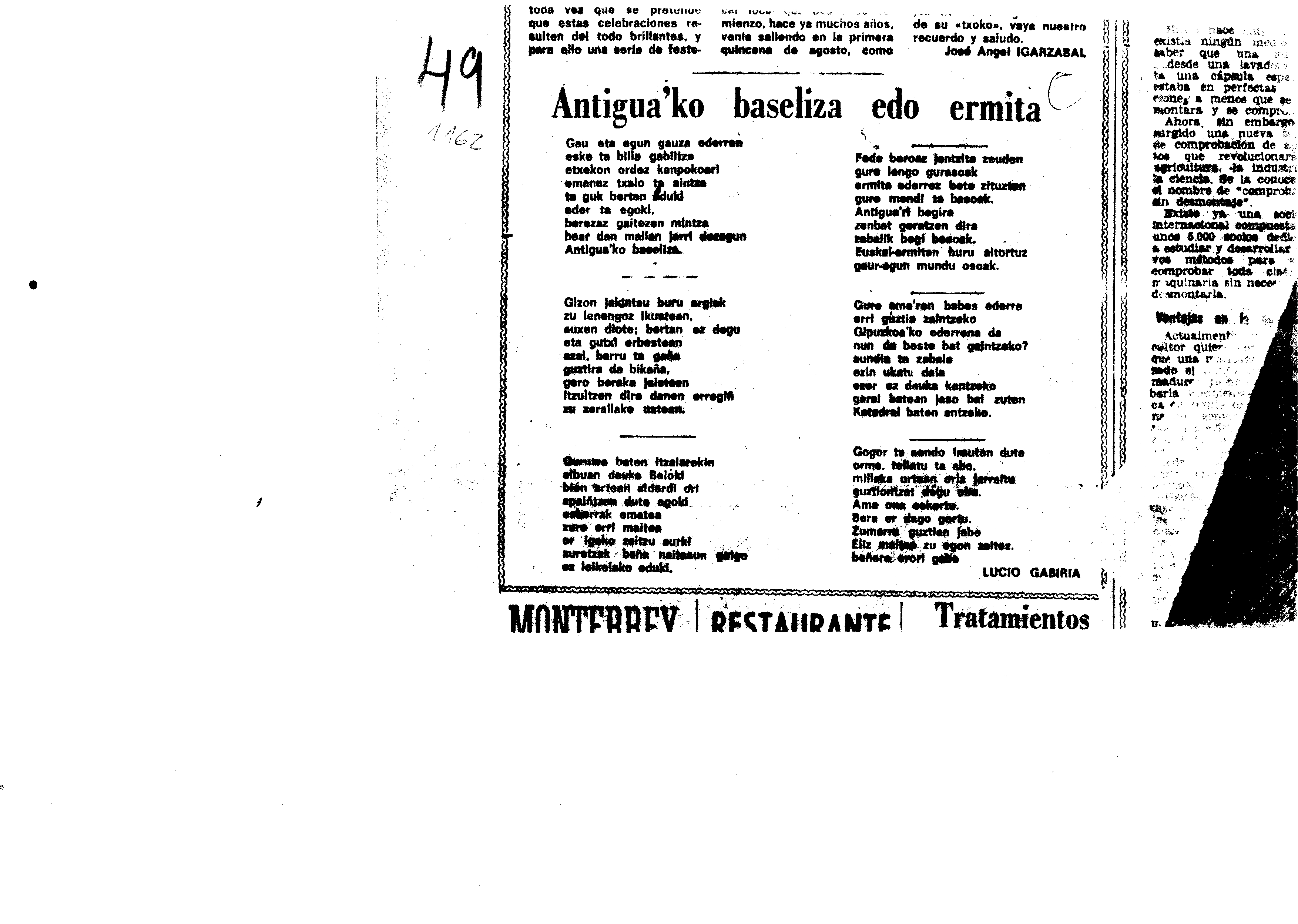 Euskaltzaindiaren sariak. Xenpelar saria: Izenburua: Antiguako baseliza edo ermita