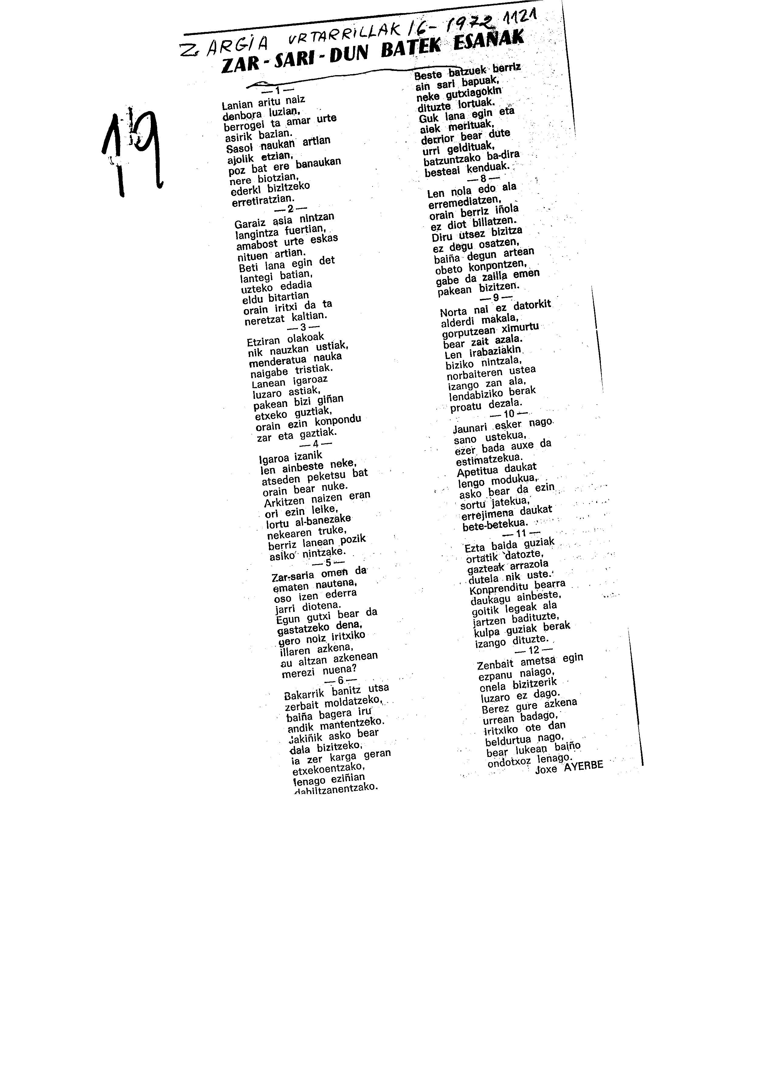 Euskaltzaindiaren sariak. Xenpelar saria: Izenburua: Zar saridun batek esanak