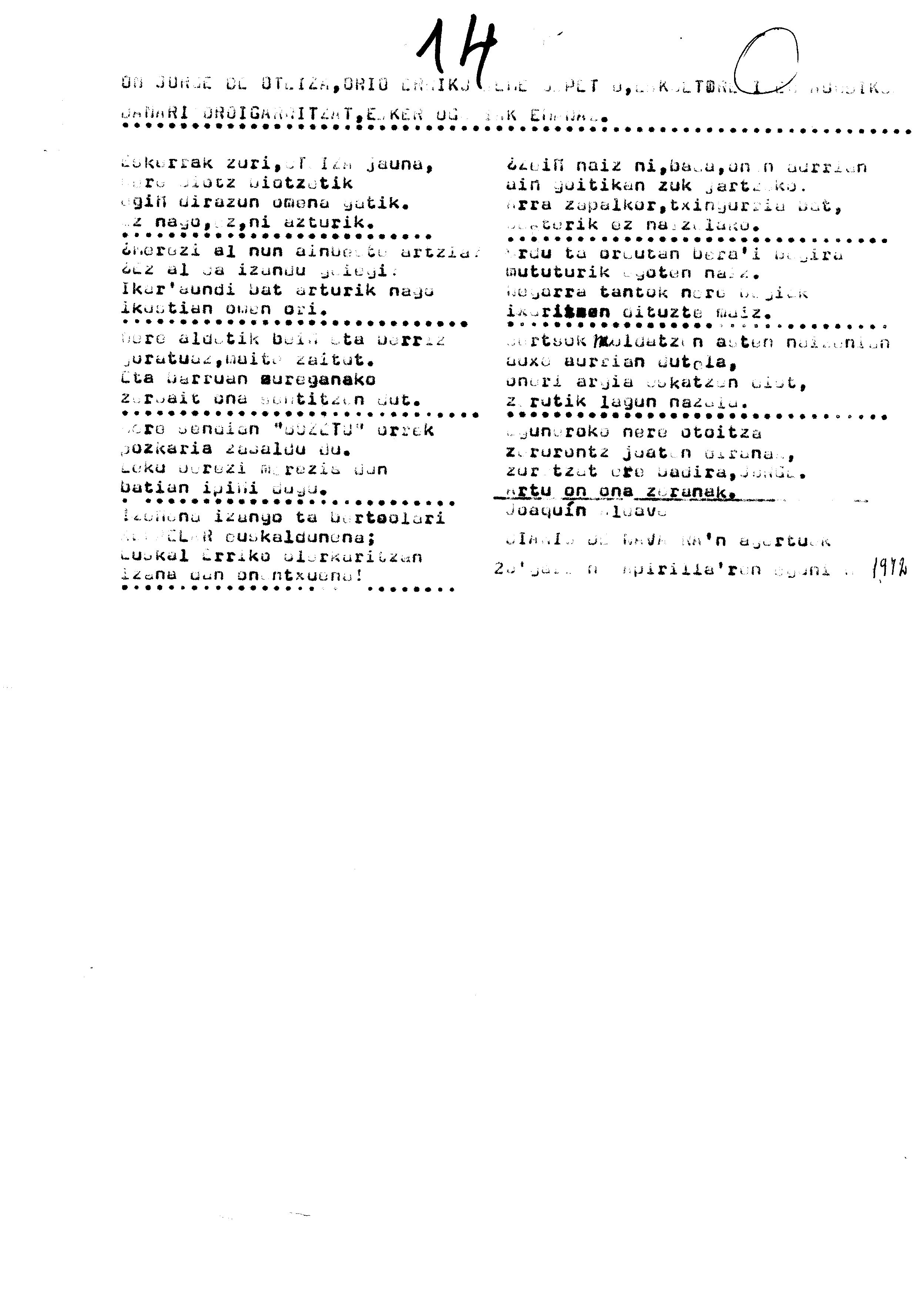 Euskaltzaindiaren sariak / Xenpelar saria: Izenburua: On Jorge de Oteiza, Orio erriko seme ospetsu, eskultore izen aundikua
