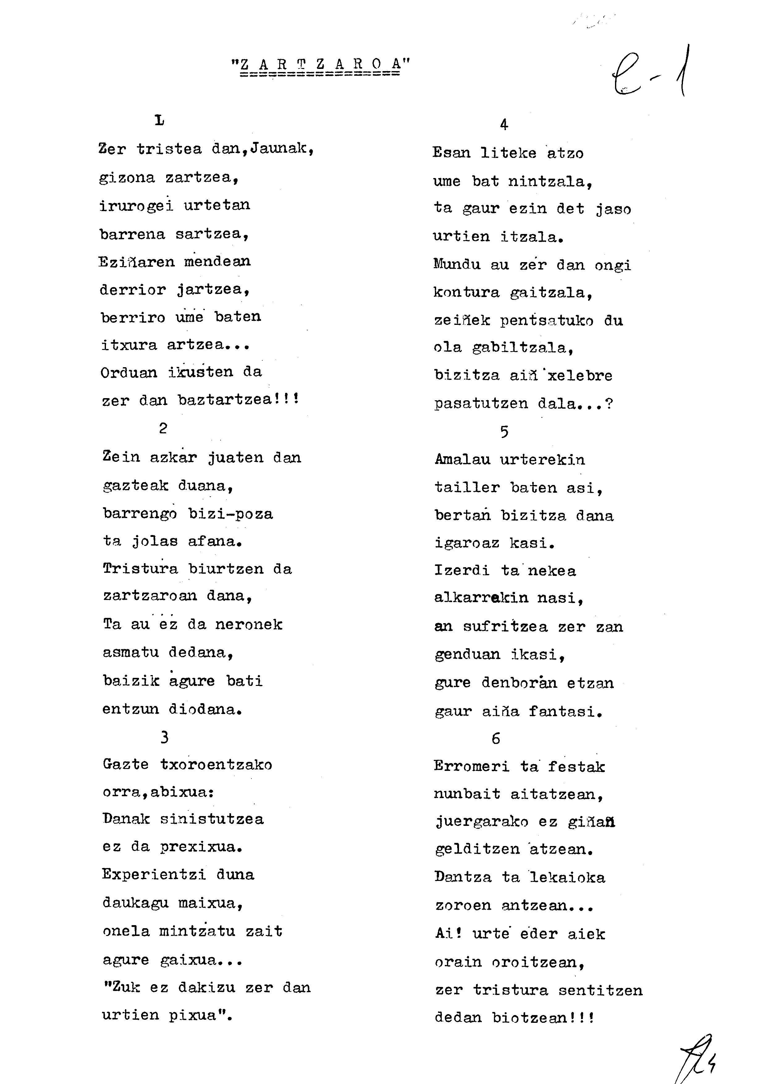Euskaltzaindiaren sariak. Xenpelar saria: Izenburua: Zartzaroa