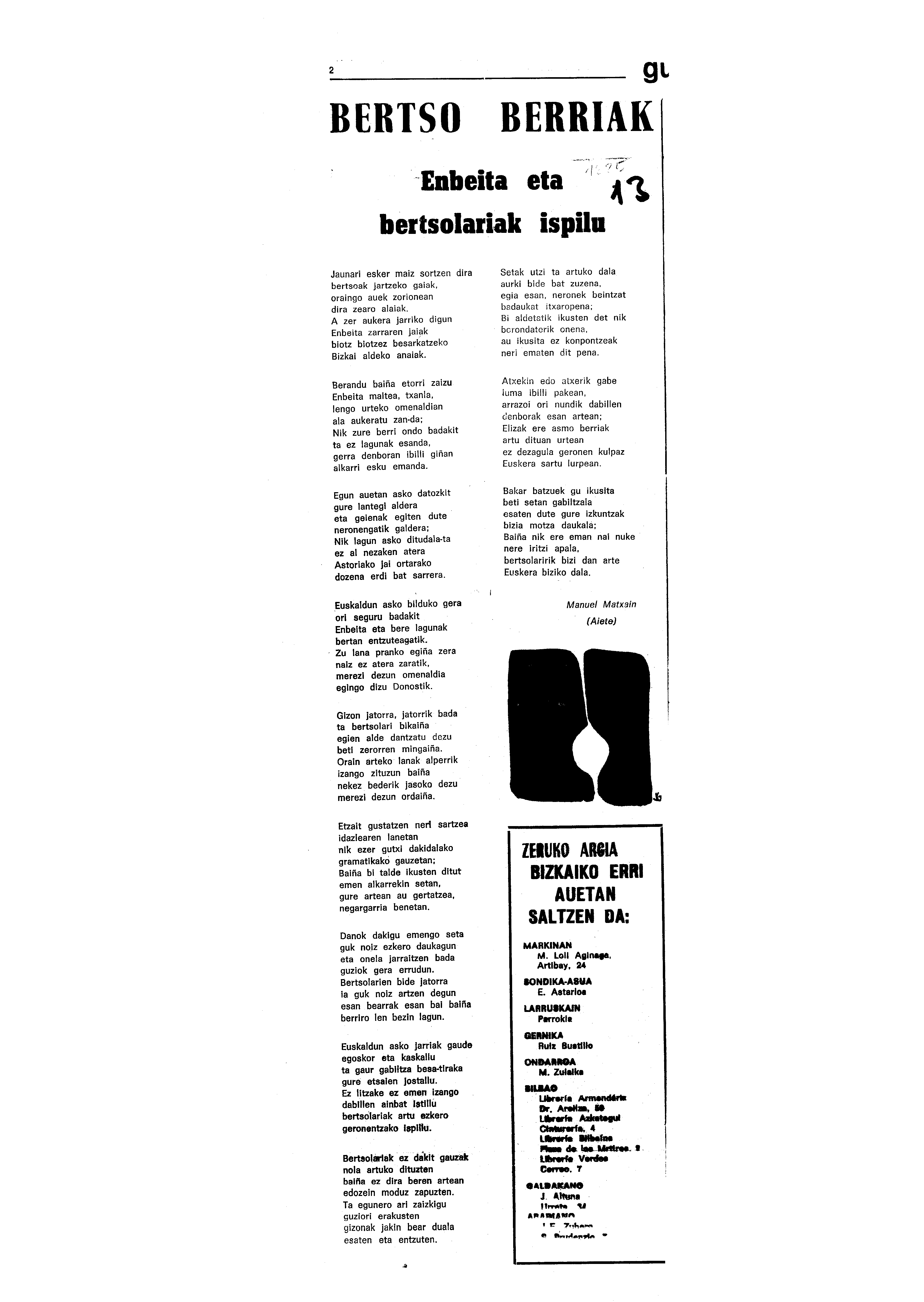 Euskaltzaindiaren sariak. Xenpelar saria: Izenburua: Enbeita eta bertsolariak ispilu