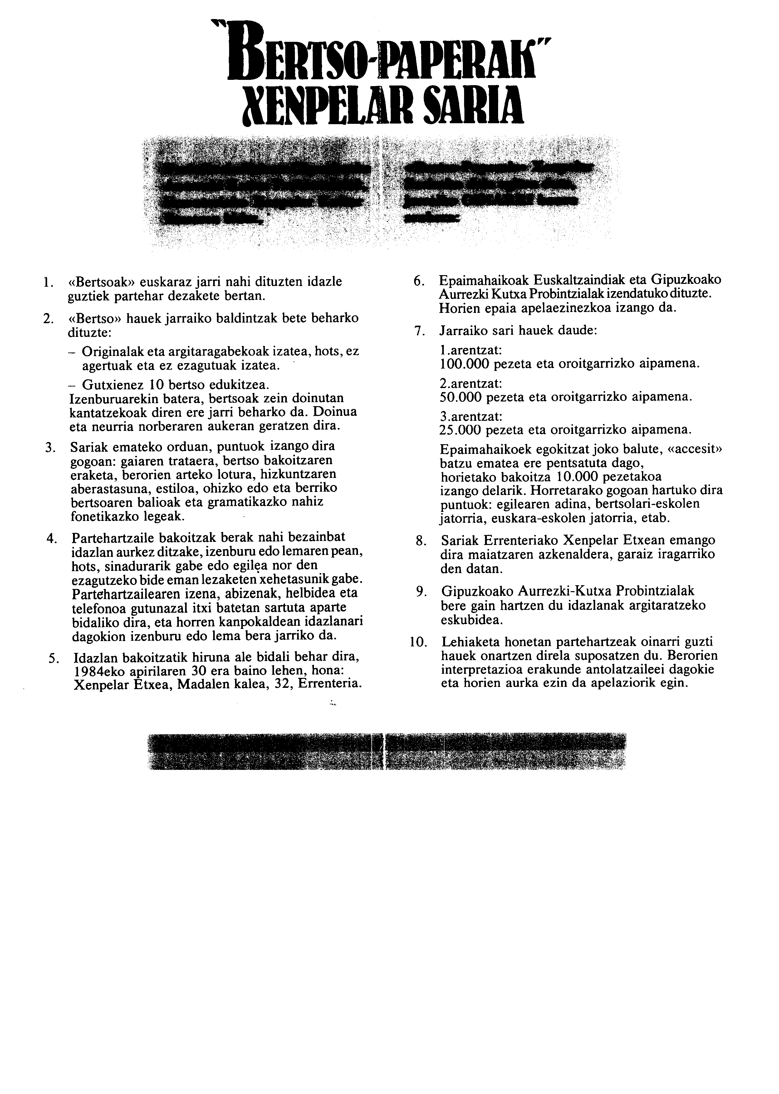 Alfonso Irigoienen Artxiboa > Euskaltzaindia > Bertsolaritza > Sariak
