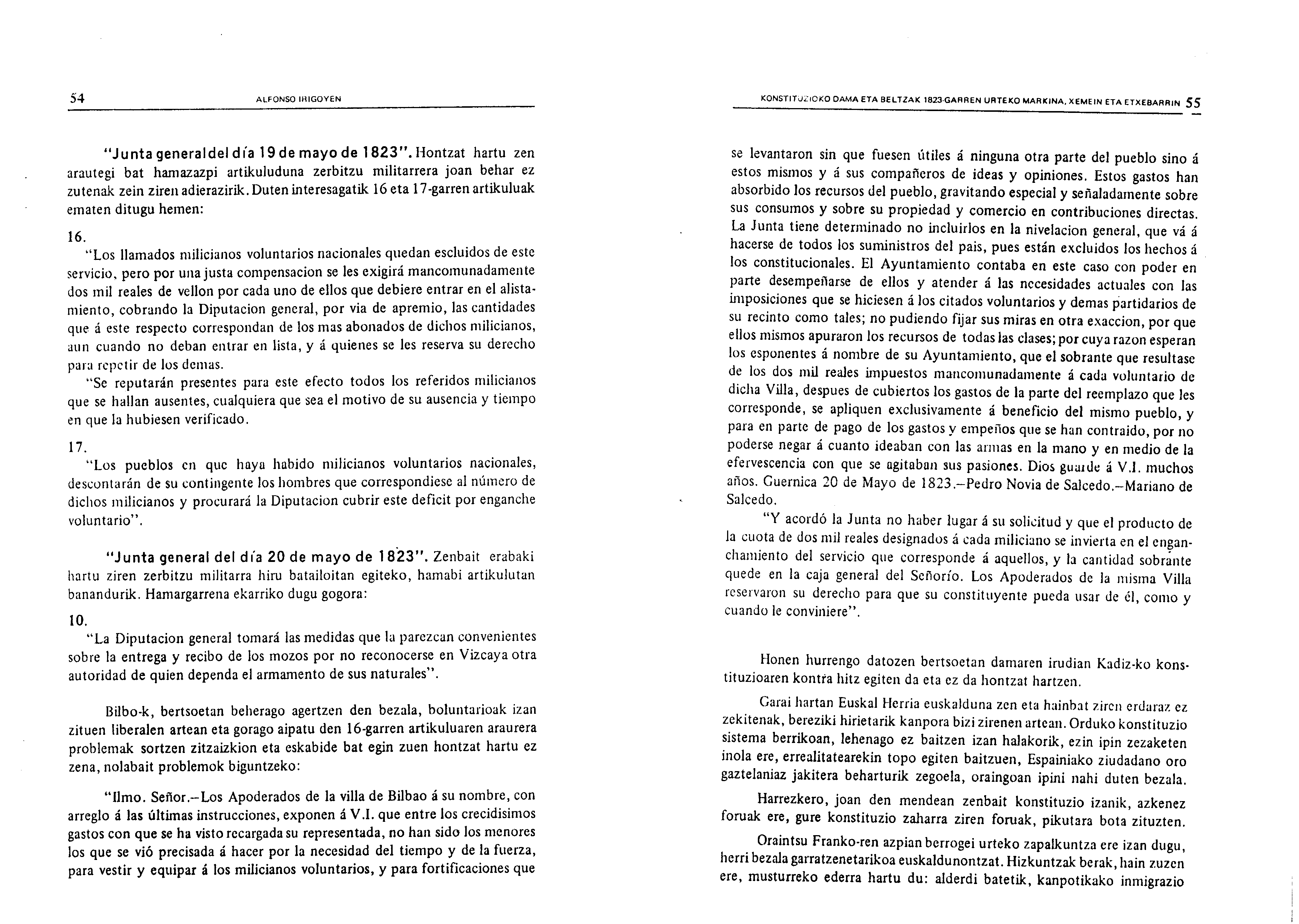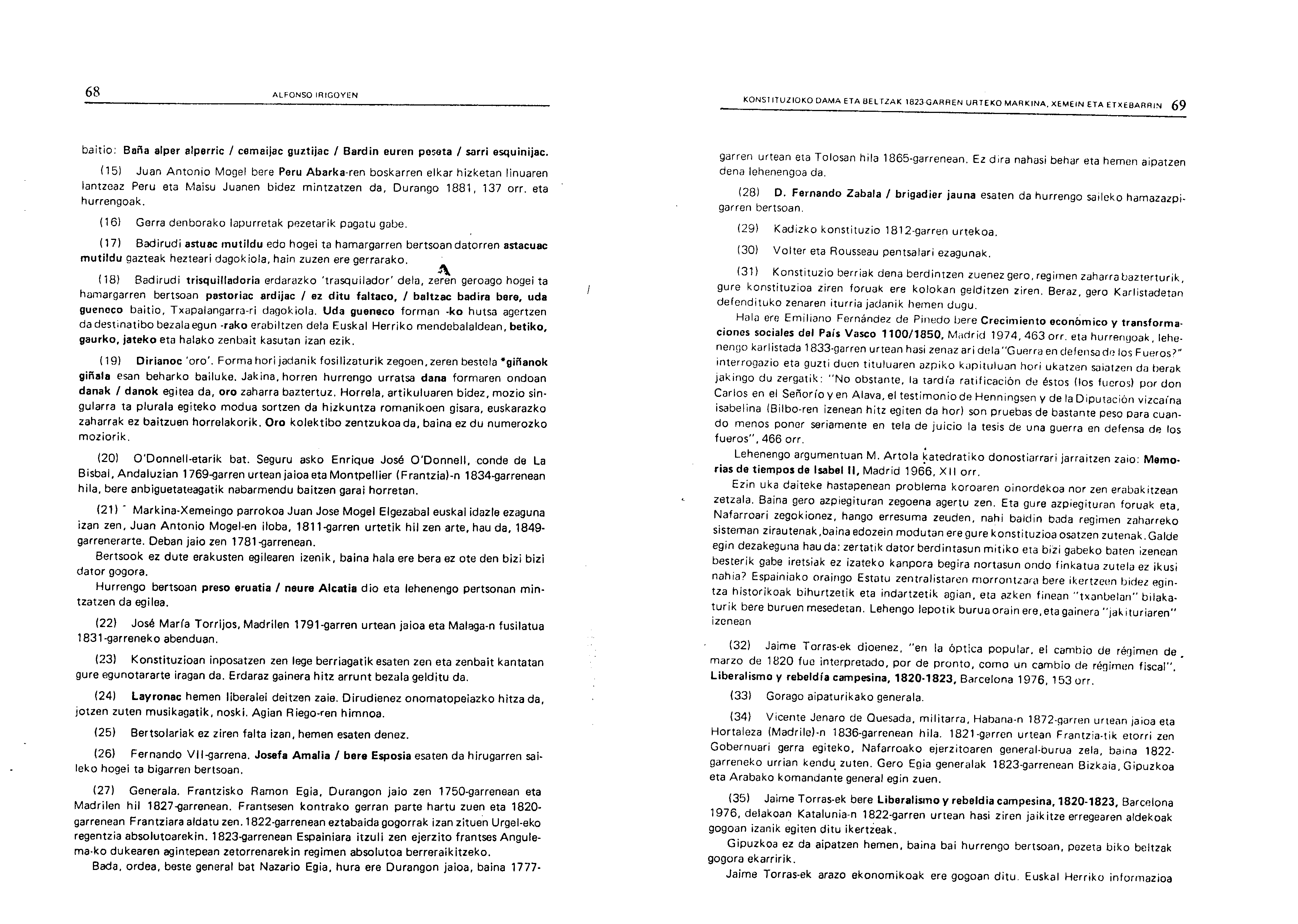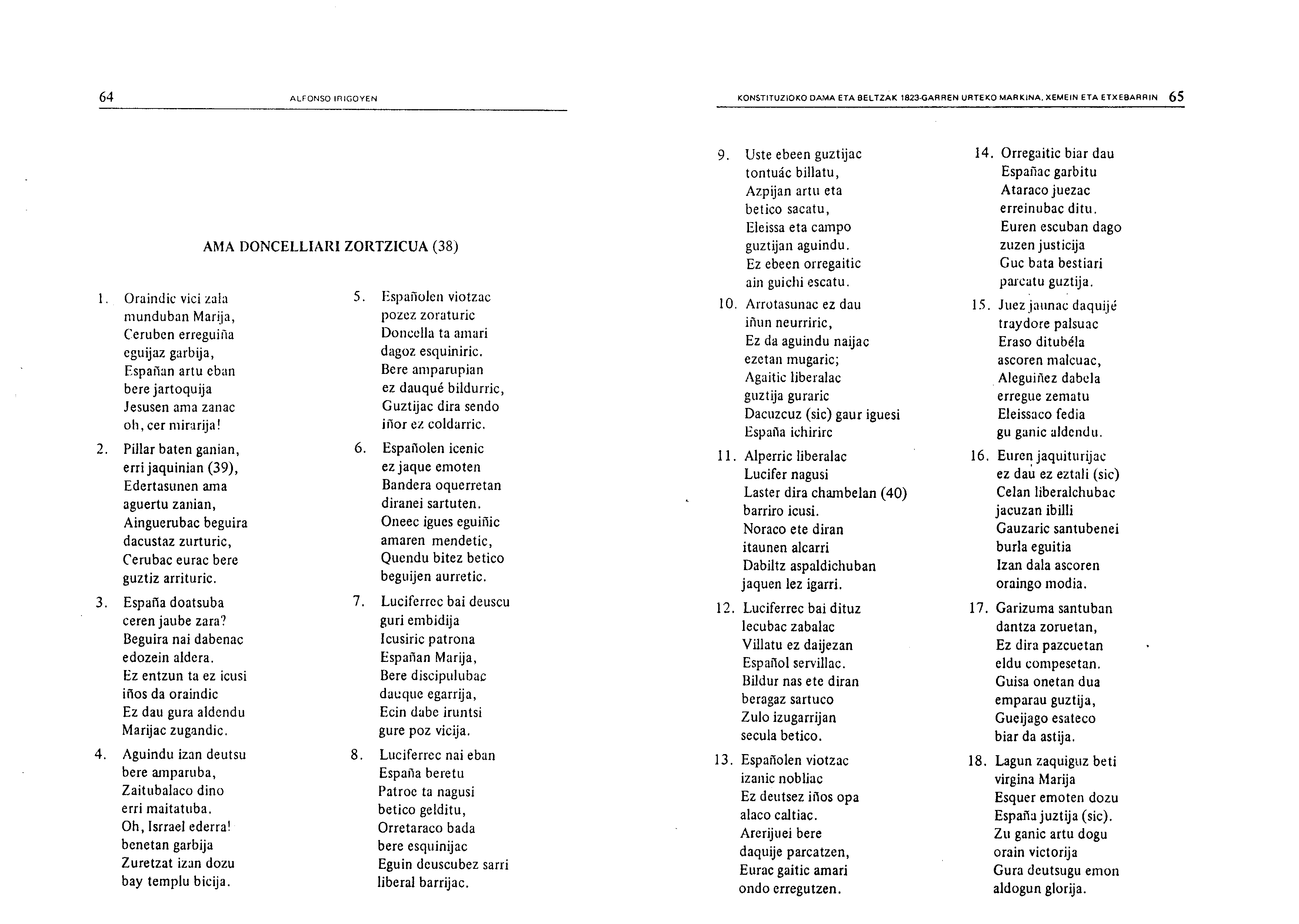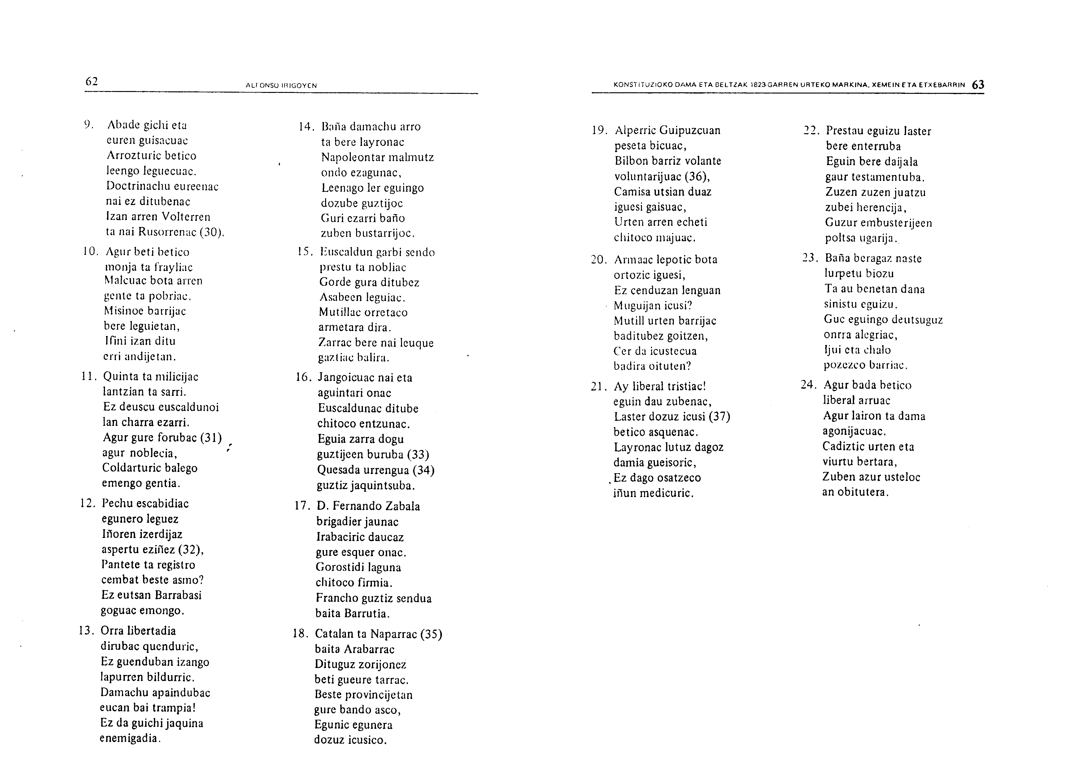 Irigoienen lanak. Idazlanak: Izenburua: Konstituzioko Dama eta Beltzak 1823-garren urteko Markina, Xemein eta Etxebarrin