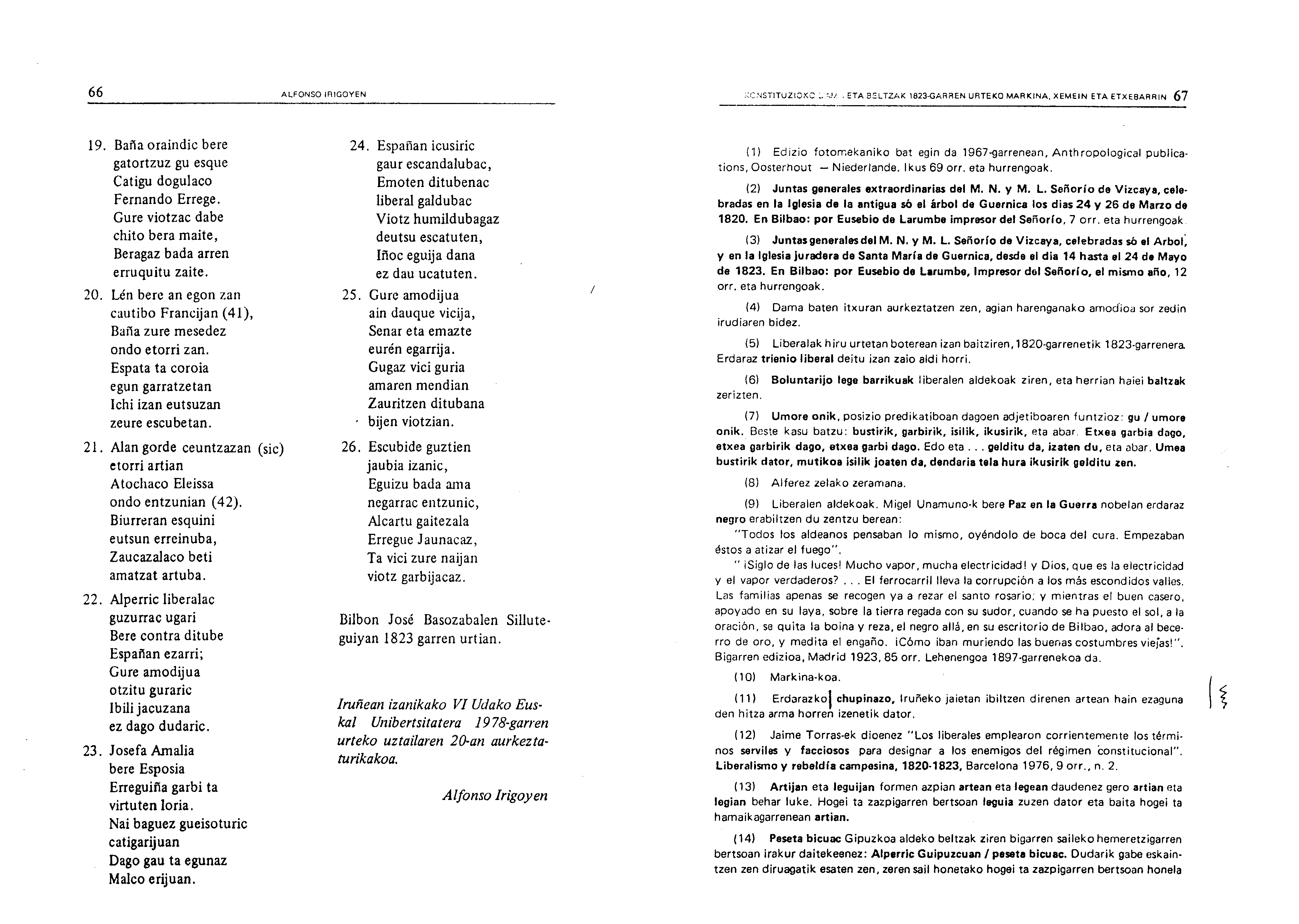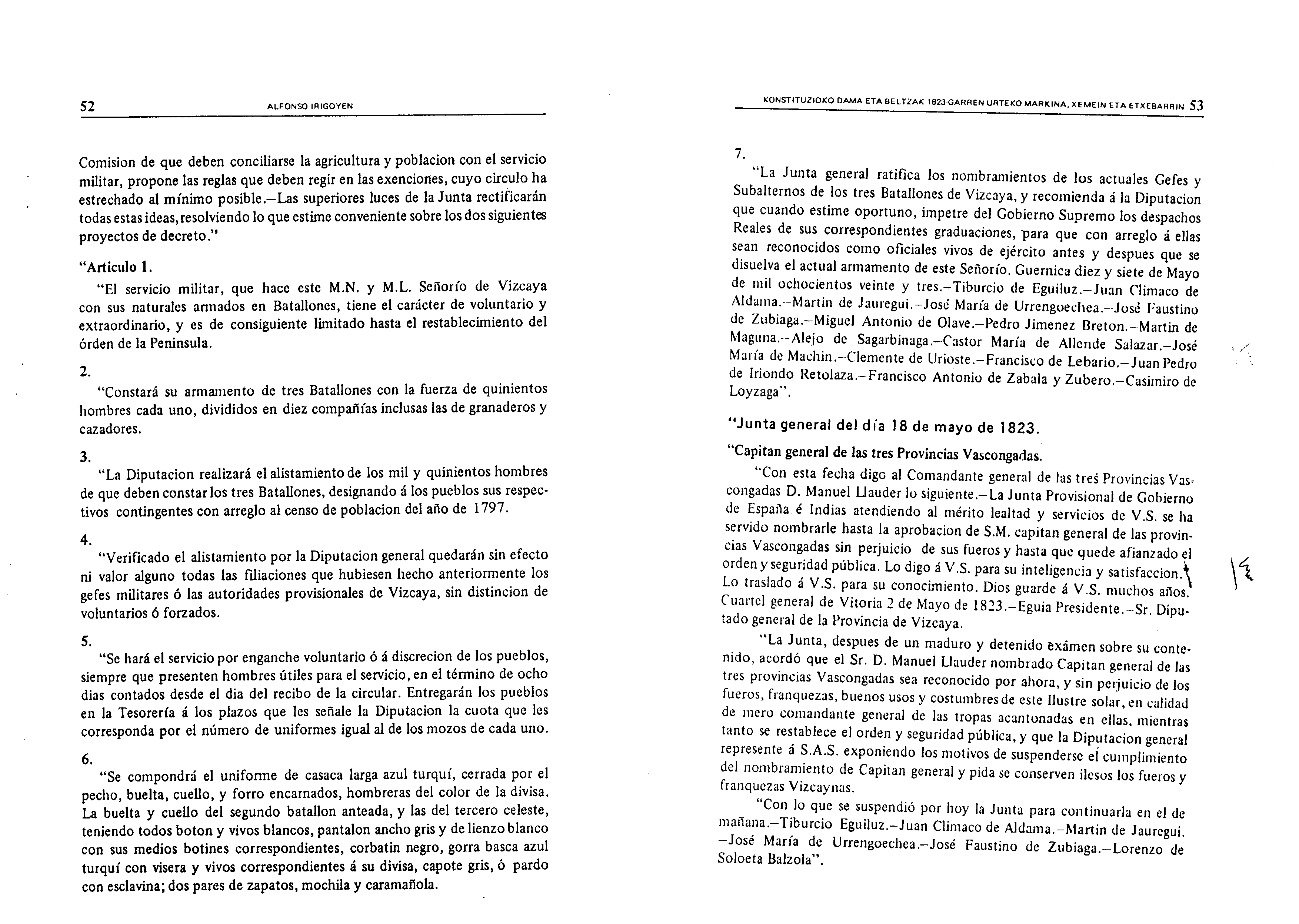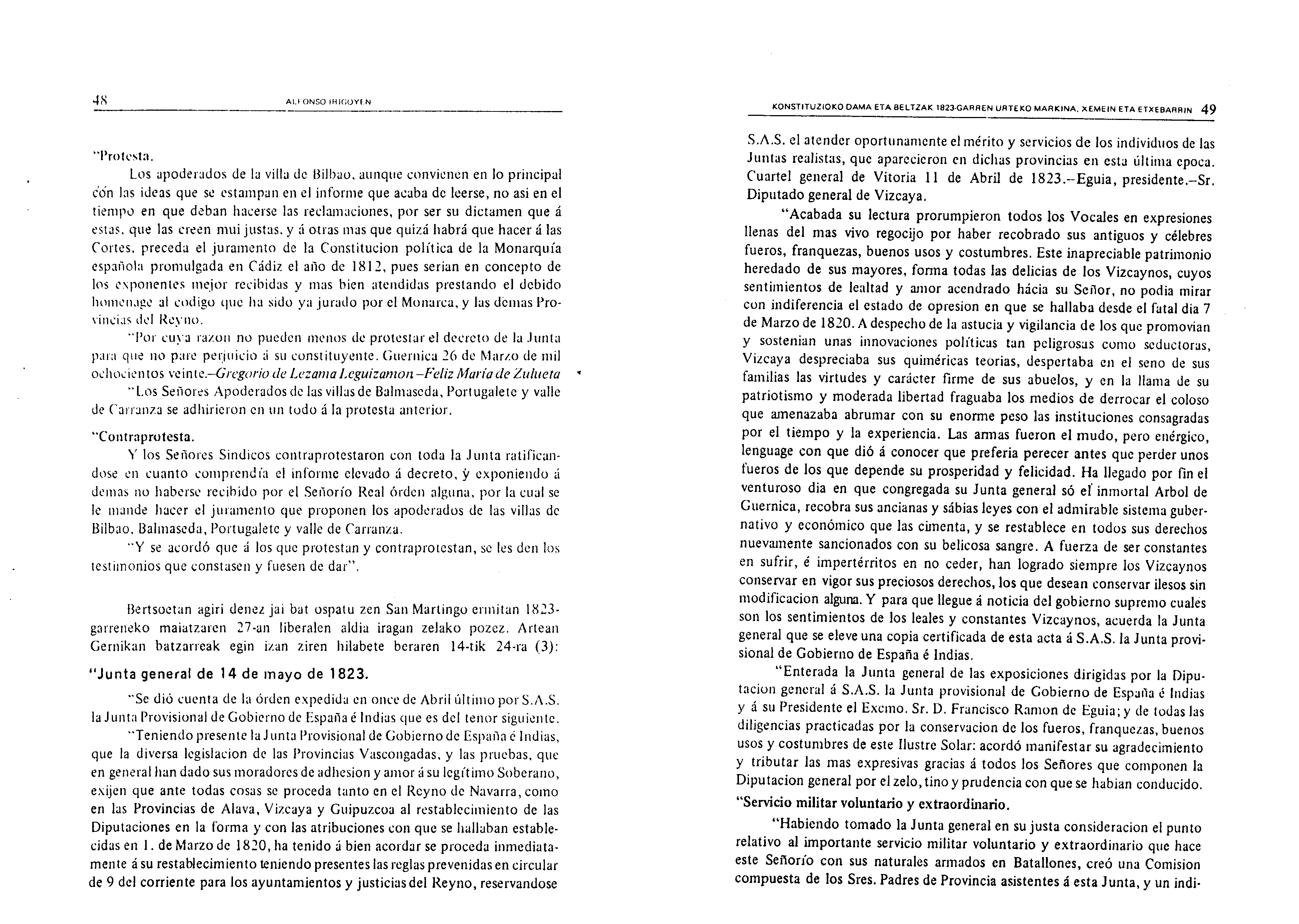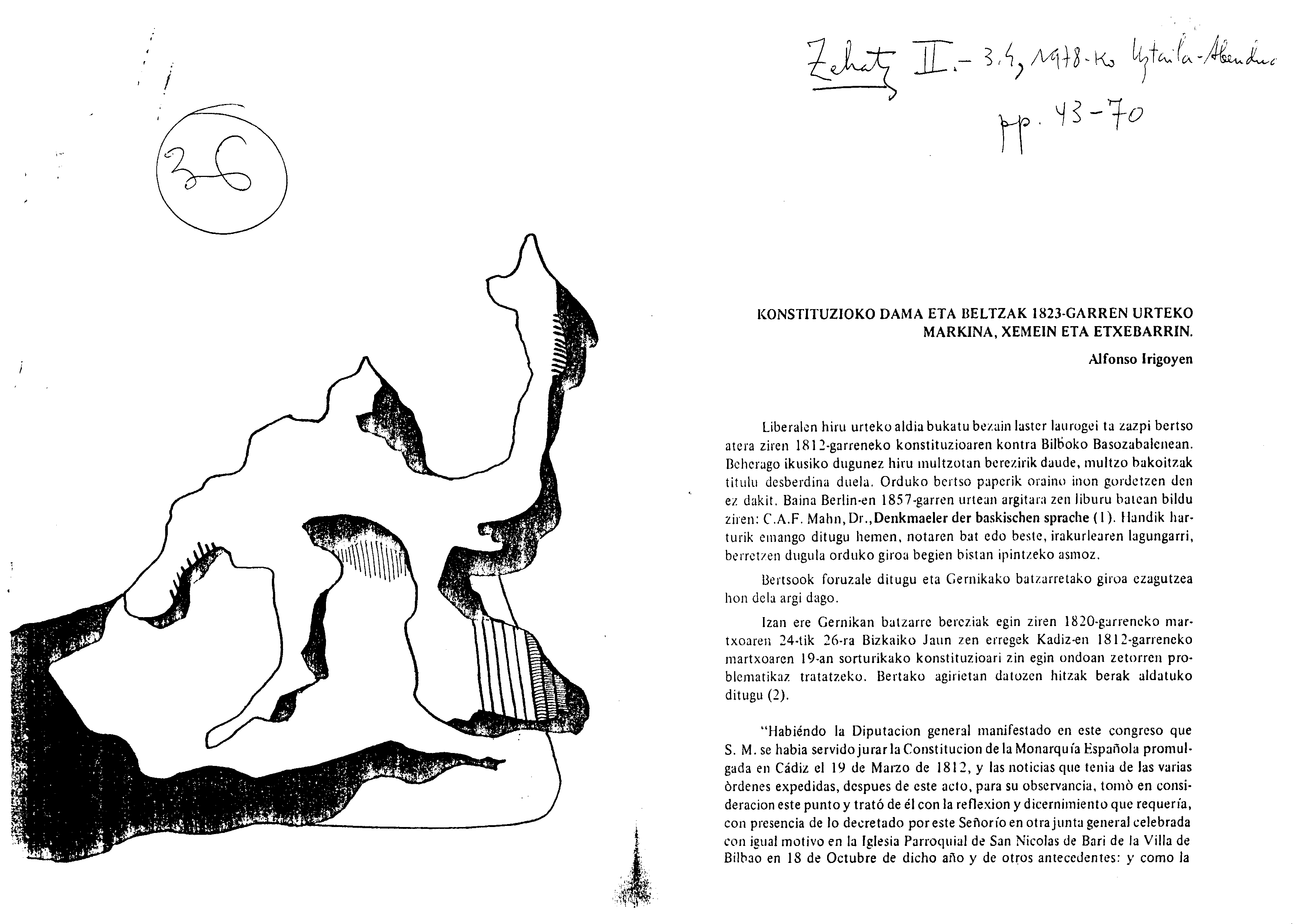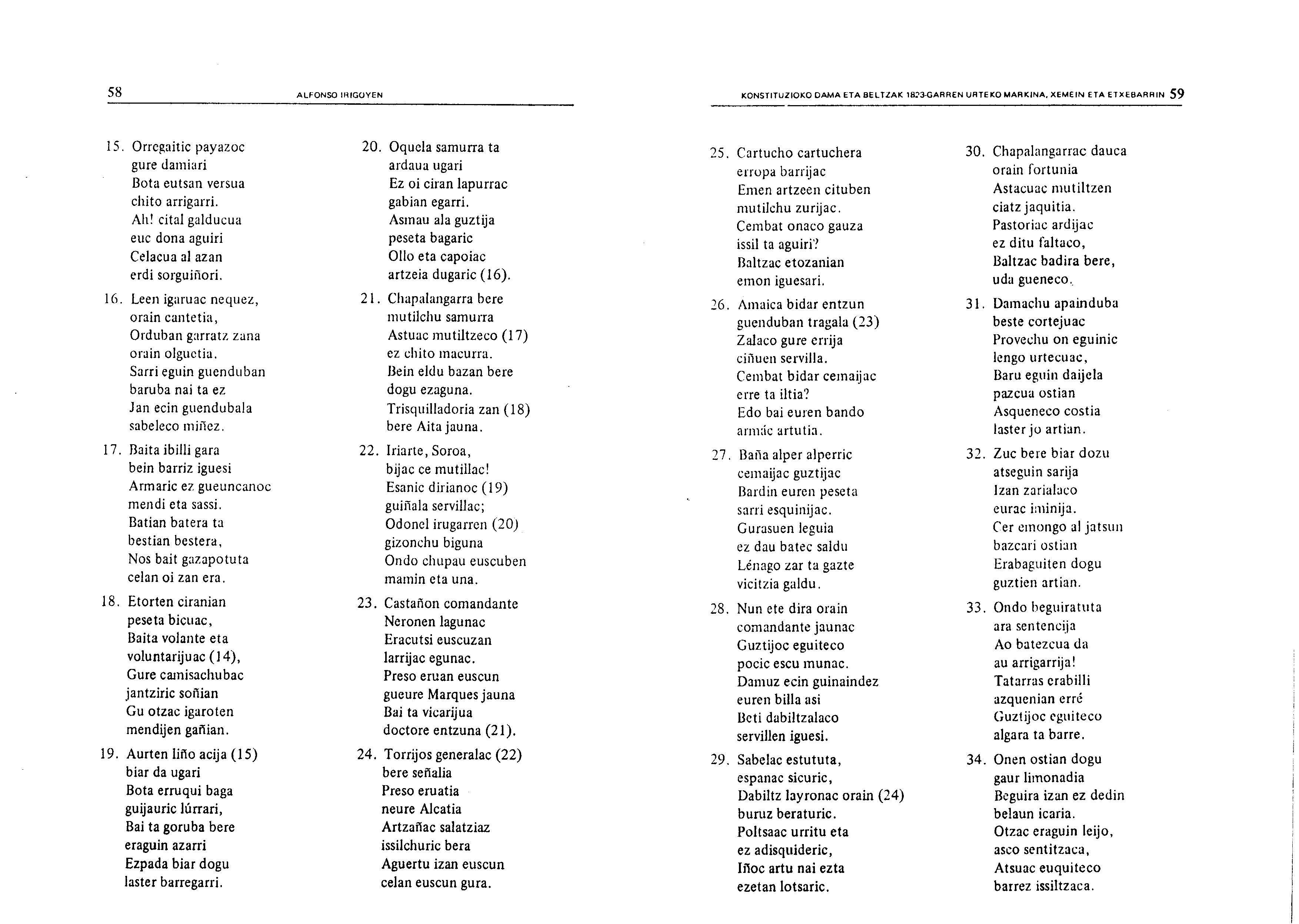 Irigoienen lanak. Idazlanak: Izenburua: Konstituzioko Dama eta Beltzak 1823-garren urteko Markina, Xemein eta Etxebarrin