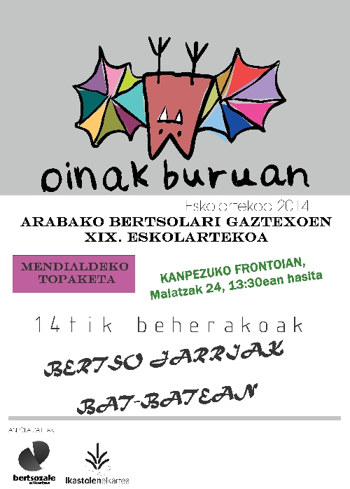 Oinak buruan : eskolartekoa 2014 : Arabako Bertsolari Gaztetxoen XIX. Eskolartekoa